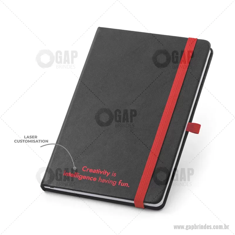 Bloco / Caderno A5 com capa dura em PU com 160 páginas pautadas. Caderno A5 de capa dura em PU com substrato colorido permitindo a gravação a laser da cor do elástico. Contém 160 páginas pautadas, elástico, fita separadora, suporte para esferográfica (não inclusa) e bolso em papel na parte traseira da capa. Medidas do produto: 14,0 x 21,0 cm - - GAPBLC181