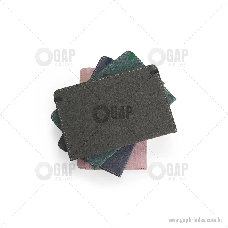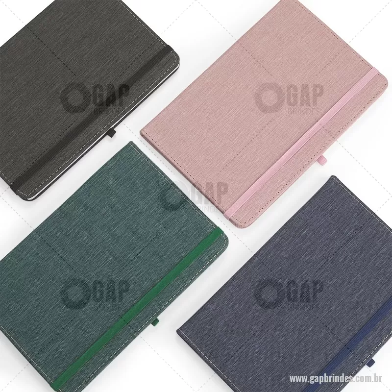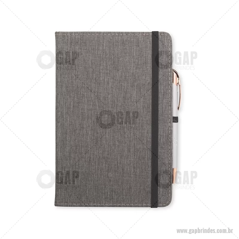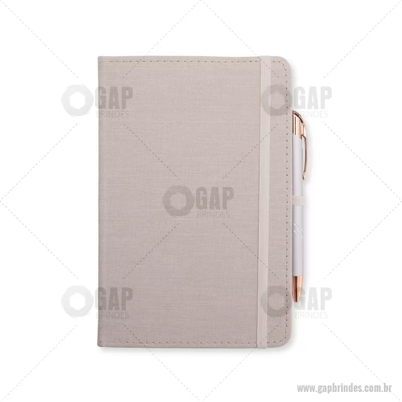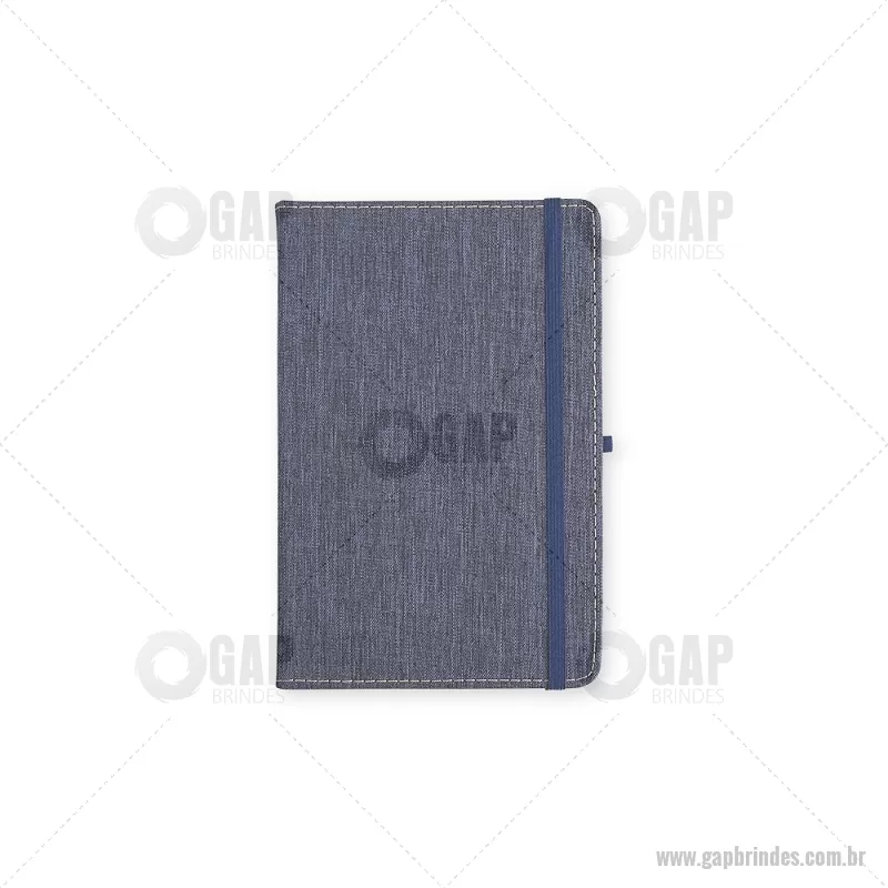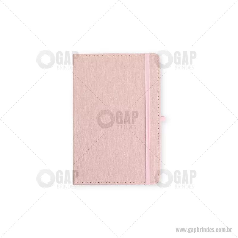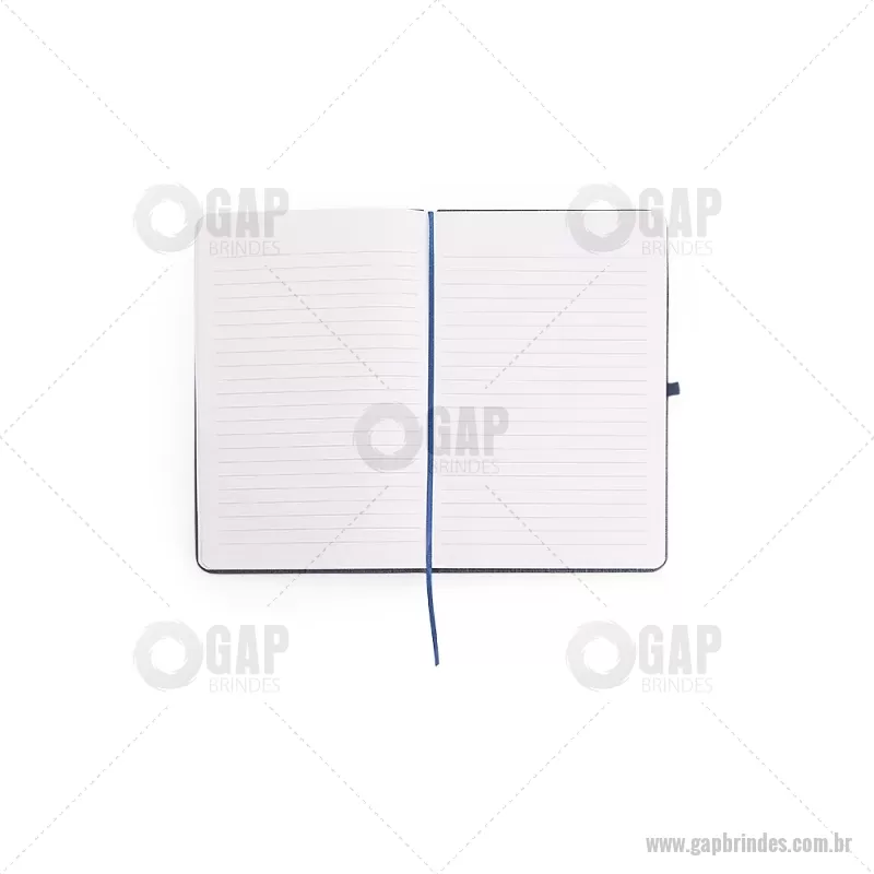 Caderneta com capa dura em linho, equipada com elástico para fechamento, marca-páginas em fita de cetim e porta-caneta. Contém aproximadamente 80 folhas pautadas, ideal para anotações do dia a dia. - - GAPBLC271