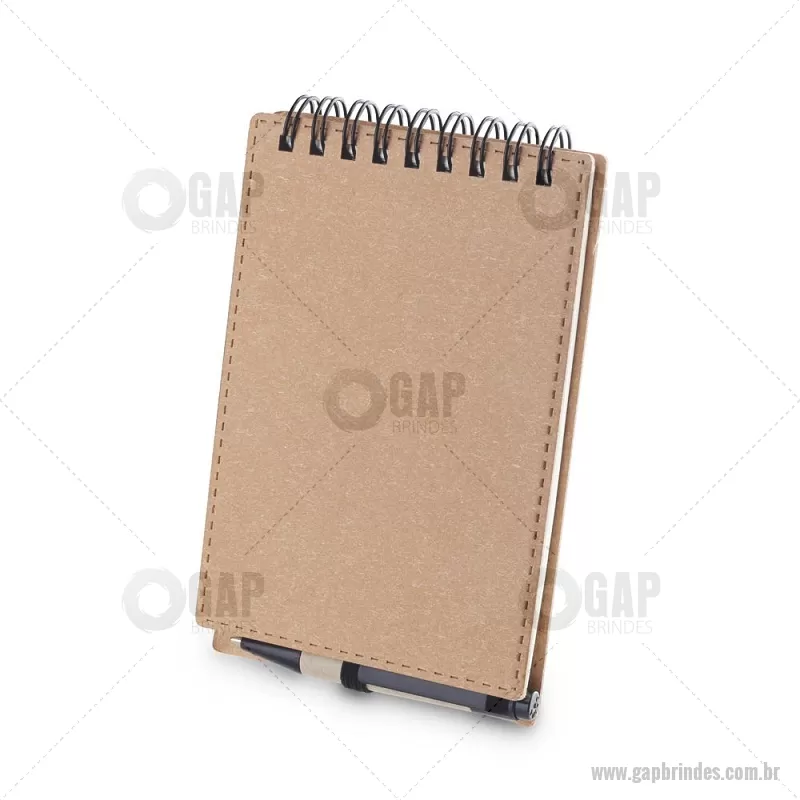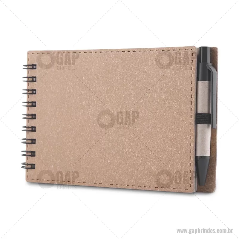 Mini Bloco/ Caderno A6 de anotações com caneta Mini Caderno com capa em papelão e encadernação espiral wire-o, 70 folhas sem pauta em 70g/m². Acompanha caneta confeccionada em papelão reciclado com detalhe em plástico. Dimensão Produto: 14x9cm (Caderno) Dimensão Produto: 8,3xø1cm (Caneta) Peso do Produto: 0,084kg - - GAPBLC277
