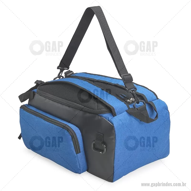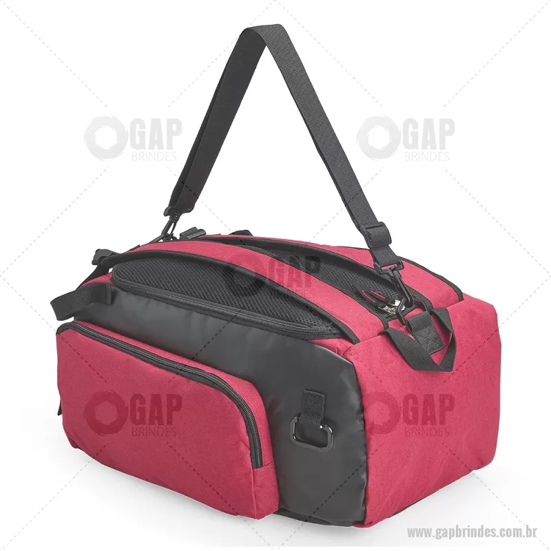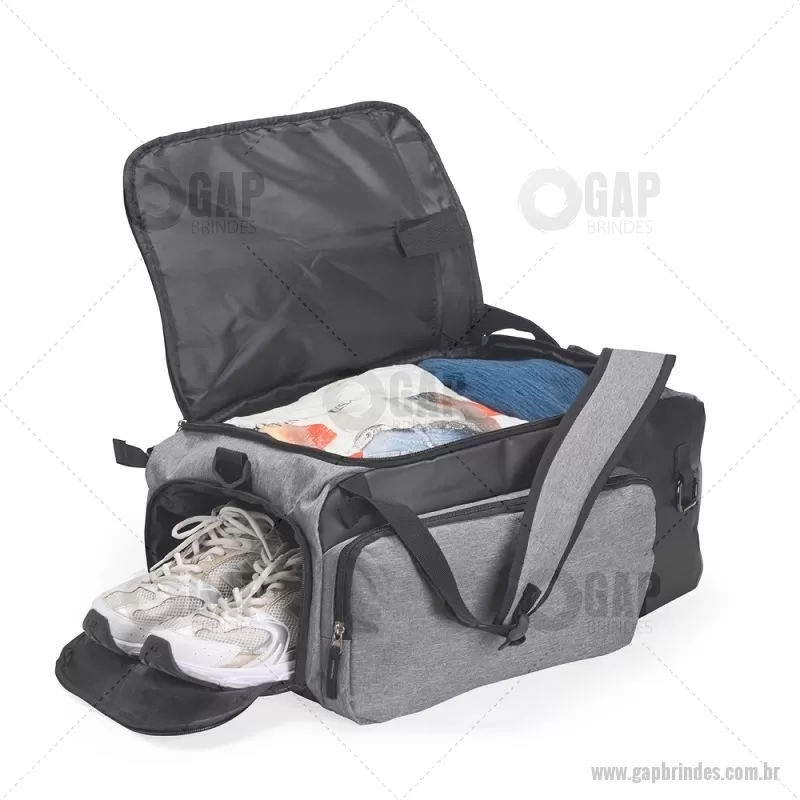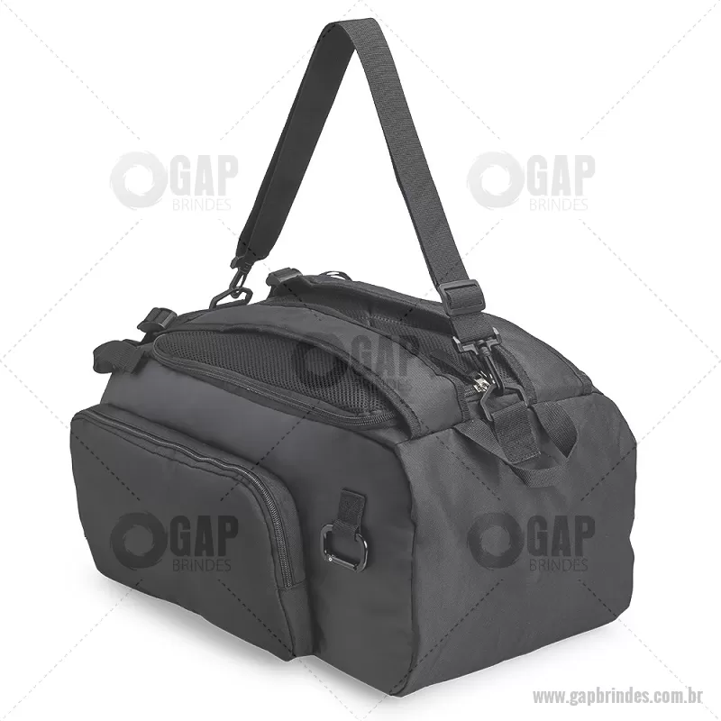 Bolsa esportiva em poliéster resistente à água, com detalhes emborrachados e capacidade de até 40 litros. Possui três compartimentos principais, incluindo bolso para notebook de até 13” e espaço separado para calçados. Conta com bolso lateral em malha, alça transversal ajustável e removível, além de alças acolchoadas e área traseira com espuma respirável, permitindo uso como mochila. - - GAPBOL050
