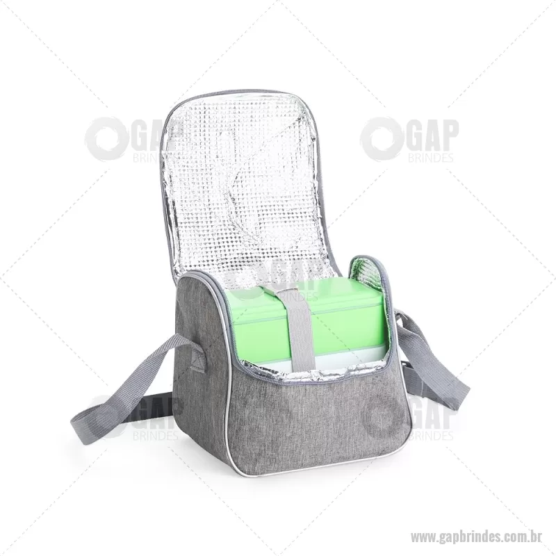 Bolsa térmica de 6 litros feita em Oxford resistente à água, com revestimento interno em alumínio EPE para melhor conservação da temperatura. Possui abertura frontal em zíper, alça superior e alça transversal fixa. Compacta e prática para o dia a dia. - - GAPBT100
