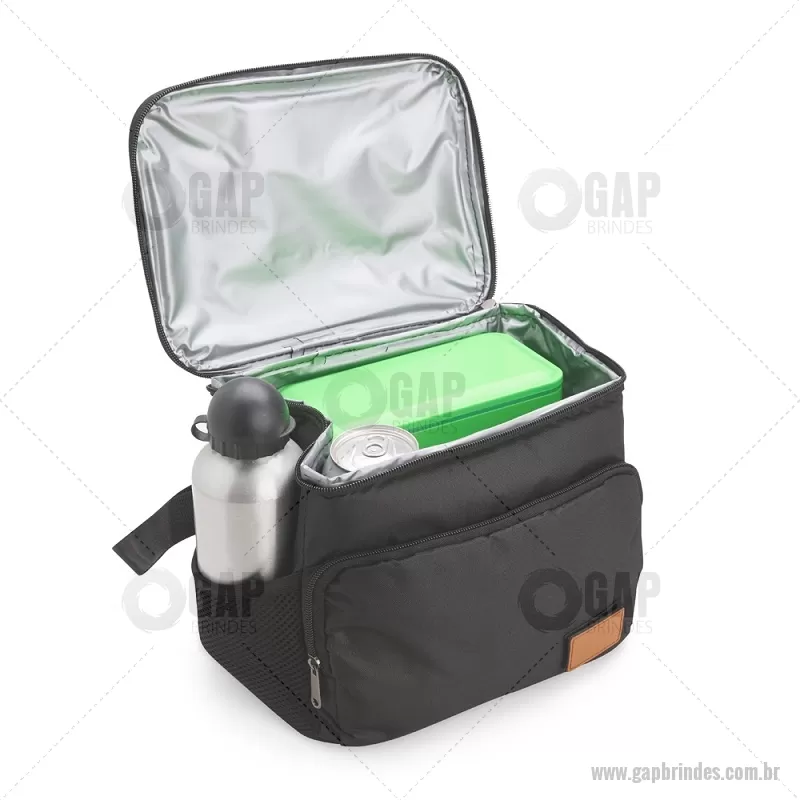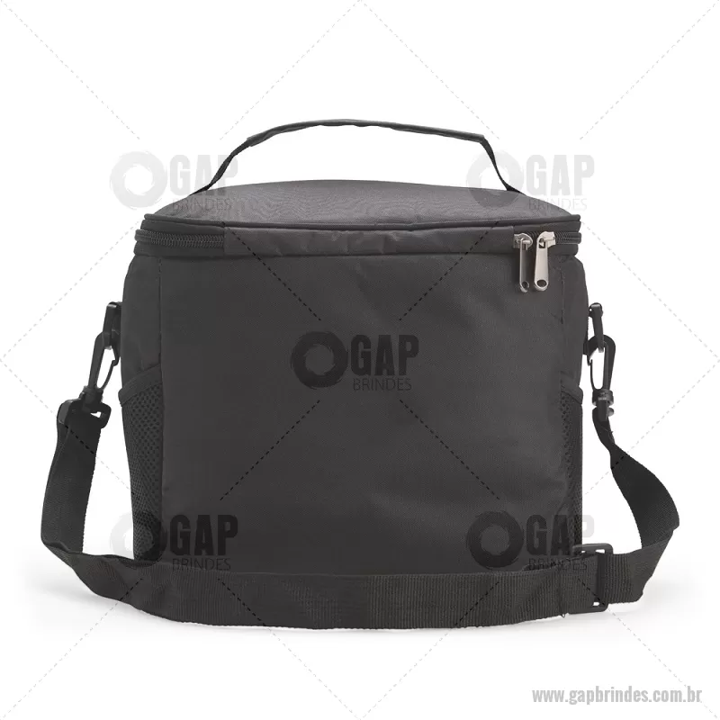 Bolsa térmica de 11 litros feita em Oxford resistente à água, com revestimento interno em PEVA atóxico e fechamento em zíper. Possui bolso frontal com plaquinha em couro sintético, dois bolsos laterais em tela, alça superior em nylon e alça transversal removível e ajustável. Prática e funcional para uso diário. - - GAPBT101