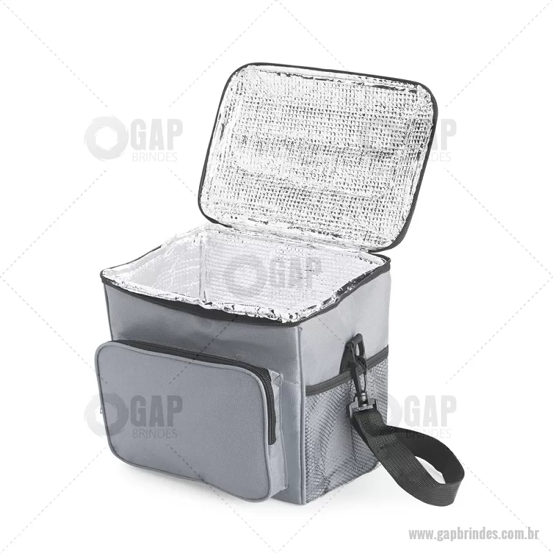 Bolsa térmica de 11 litros feita em Oxford resistente à água, com revestimento interno em alumínio para melhor conservação de temperatura. Conta com bolso frontal, dois bolsos laterais em tela, alça fixa na tampa e alça transversal. Prática e ideal para transportar alimentos e bebidas no dia a dia. - - GAPBT099