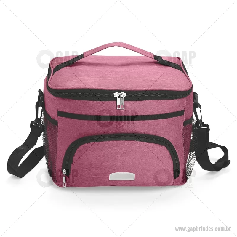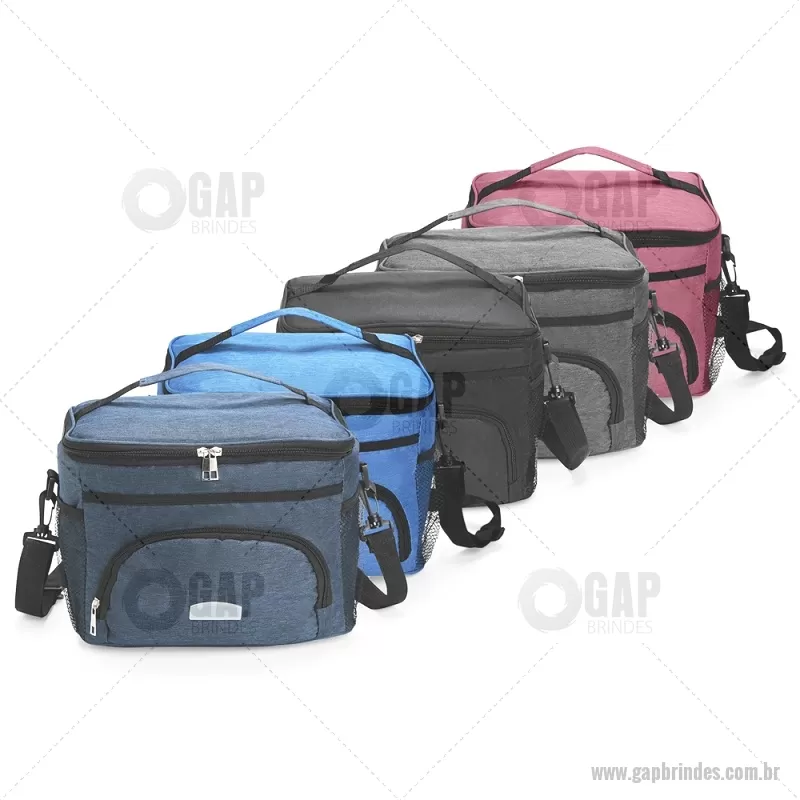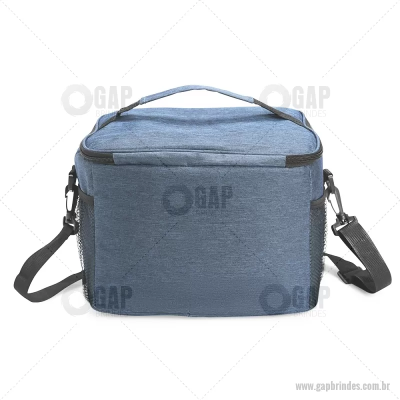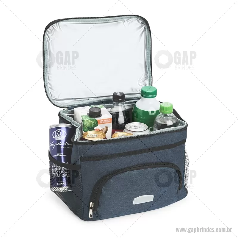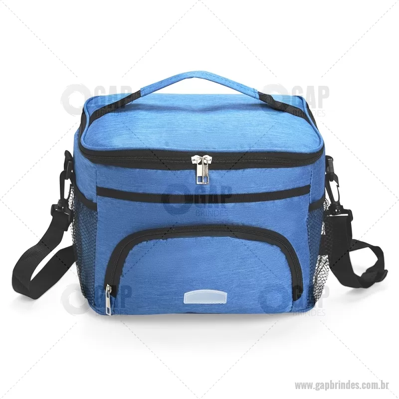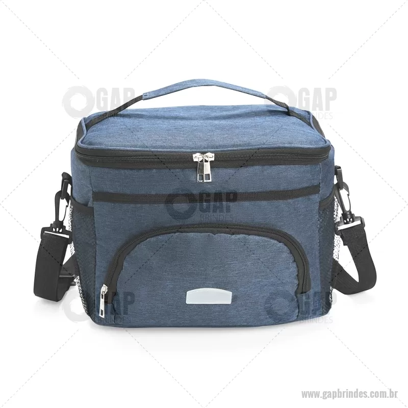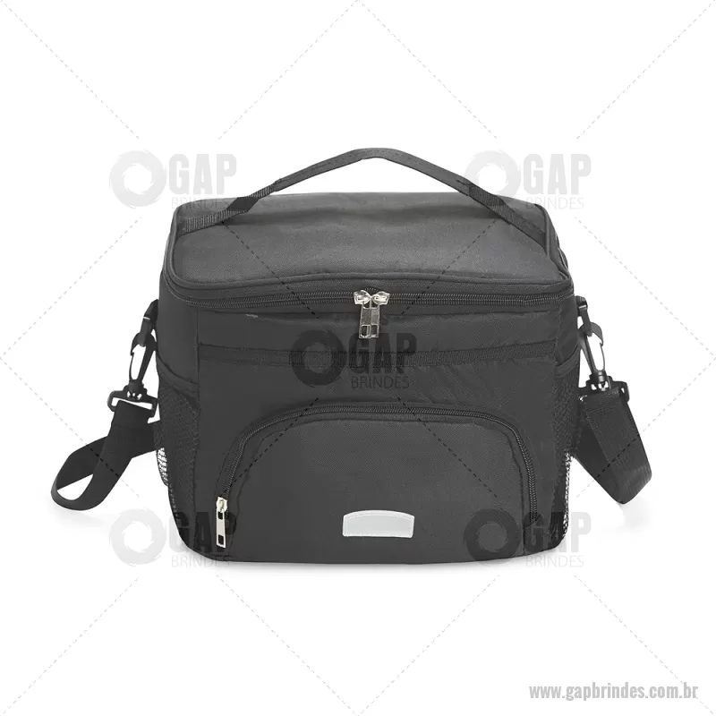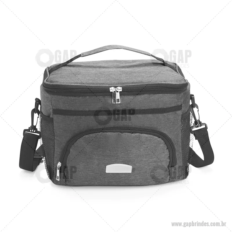Bolsa térmica de 10 litros feita em poliéster resistente à água, com revestimento interno em PVC laminado. Conta com bolso frontal com zíper, dois bolsos laterais em tela, alça superior fixa e alça transversal removível. Prática e ideal para levar alimentos e bebidas no dia a dia. - - GAPBT103