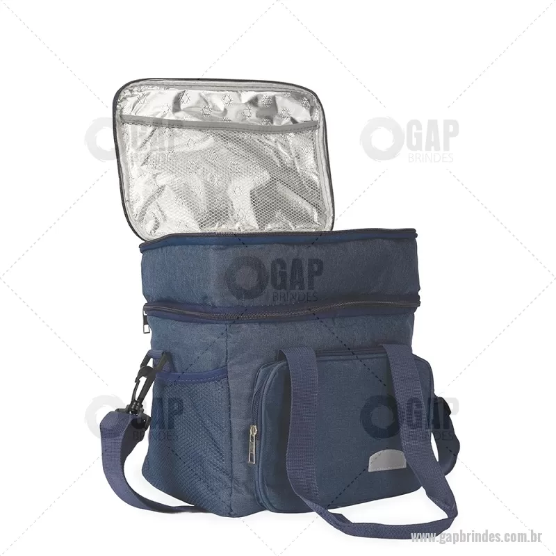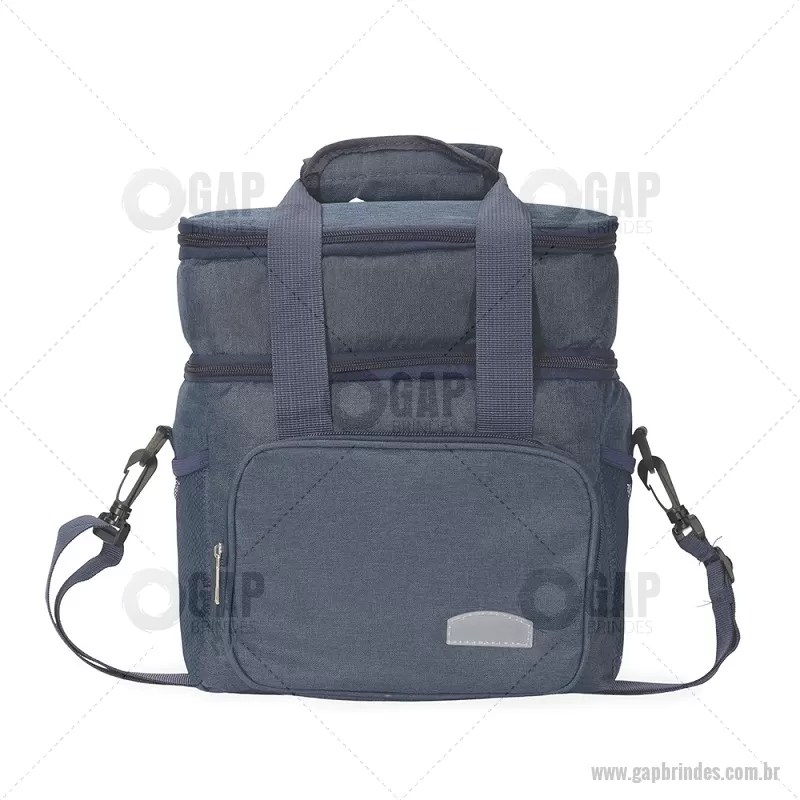 Bolsa térmica de 15 litros feita em Oxford resistente à água, com revestimento interno em PEVA e tampa com isolamento em alumínio. Conta com bolso frontal, dois bolsos laterais em tela, alças de mão com suporte de junção e alça transversal removível. Prática e ideal para manter alimentos e bebidas na temperatura por mais tempo. - - GAPBT105