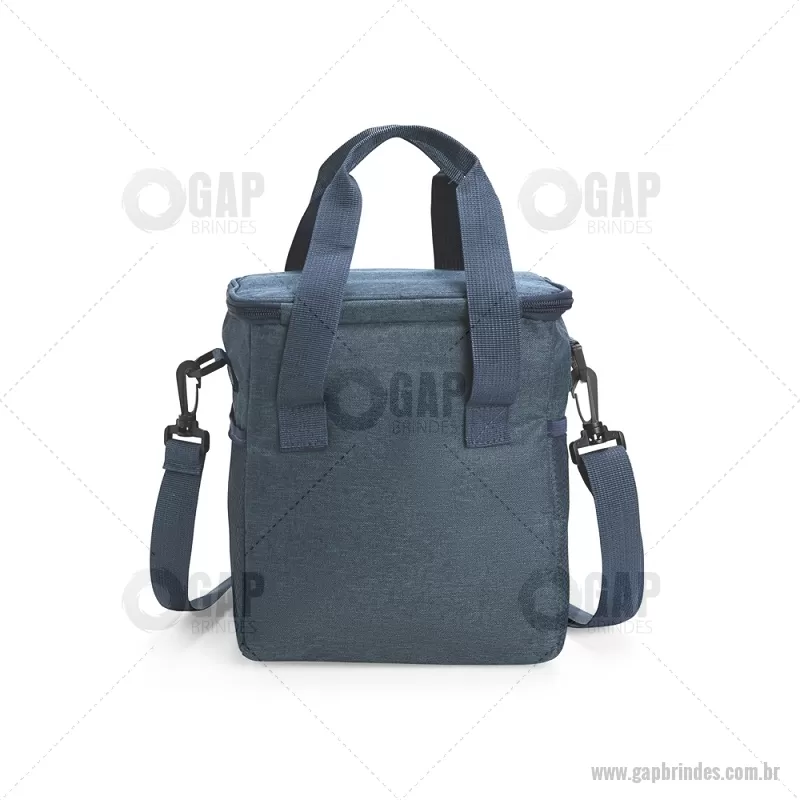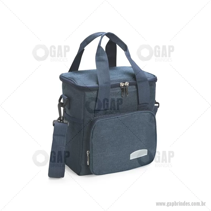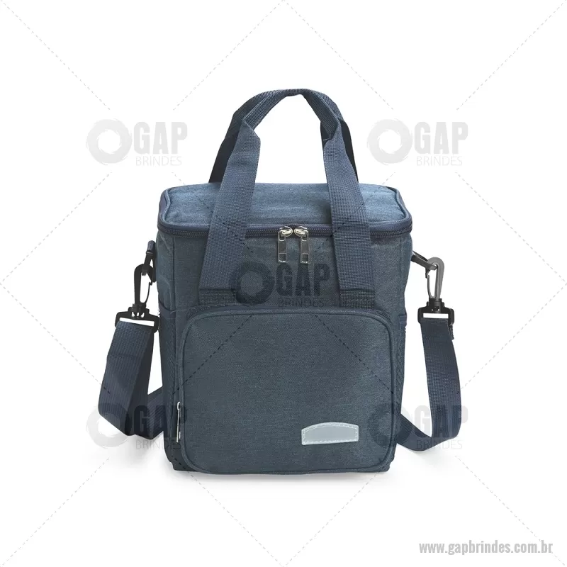 Bolsa térmica de 11 litros feita em Oxford resistente à água, com revestimento interno em PEVA e tampa isolada com folha de alumínio. Possui bolso frontal com zíper, dois bolsos laterais em tela, alças laterais fixas e alça transversal removível. Ideal para manter alimentos e bebidas na temperatura por mais tempo. - - GAPBT106
