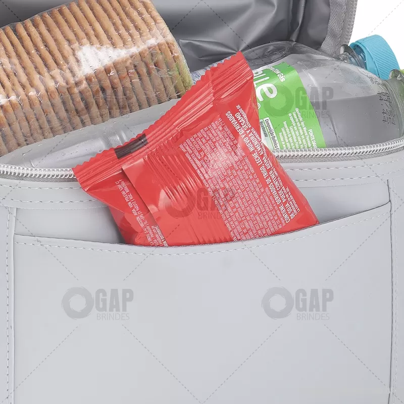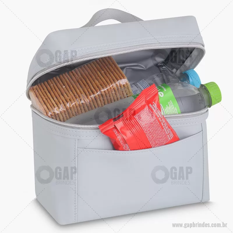 Bolsa térmica 5 lts em PU com zíper, parte interna costurada, com alça de mão e bolso frontal. Dimensão Produto: 18x21,5x13cm (AxLxP) Peso do Produto: 0,150kg Volume: 5L - - GAPBT095