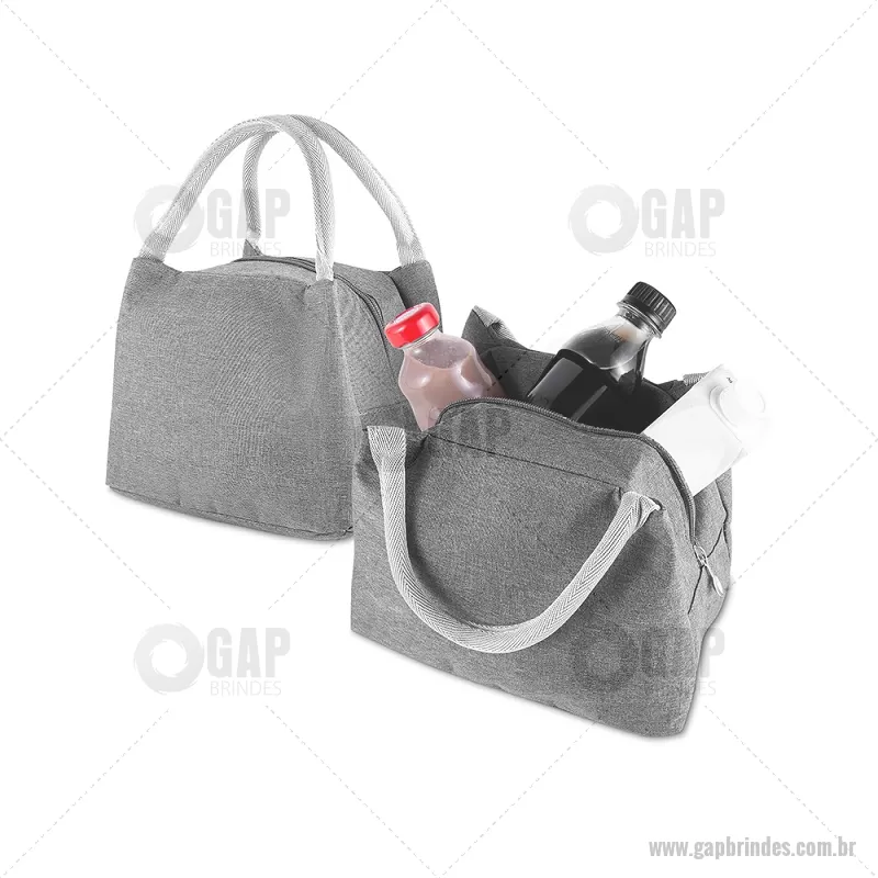 Bolsa térmica com alça de mão, confeccionada em poliéster 300D na parte externa. Possui interior em alumínio com manta térmica, auxiliando na conservação da temperatura dos alimentos e bebidas. Modelo costurado, sem solda, conta com fechamento em zíper com puxador em formato de colher e capacidade aproximada de 5,6 litros. - - GAPBT119