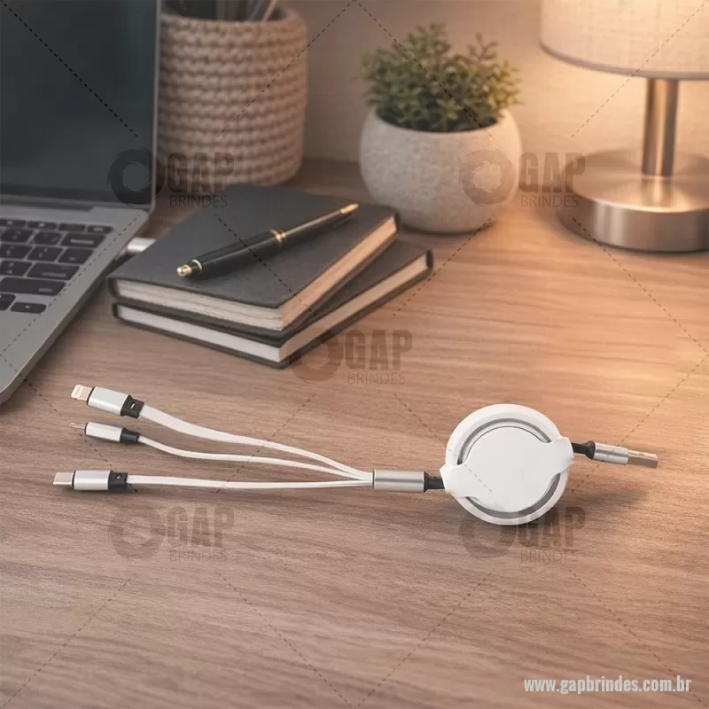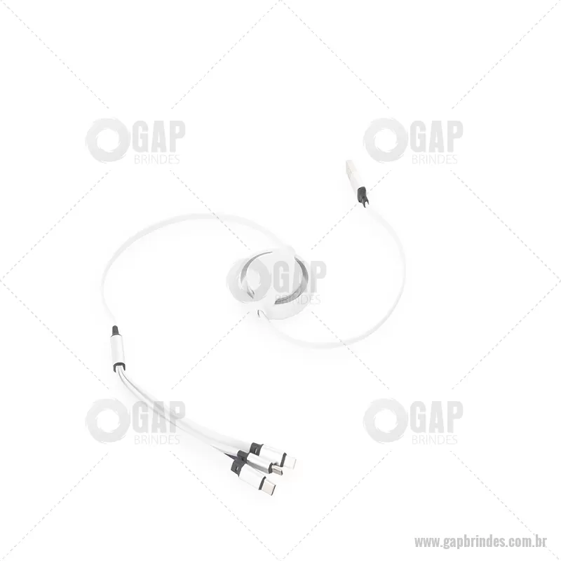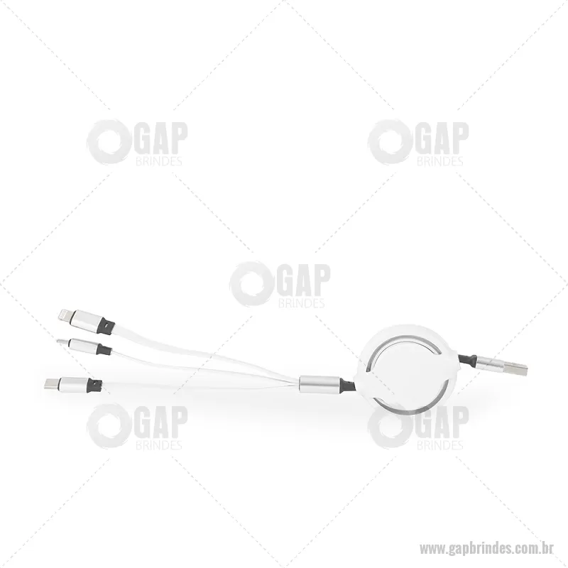 Cabo USB retrátil 3 em 1 com extensão máxima de 1m. Possui conectores USB-C, Micro USB e Lightning em uma extremidade e conector USB-A na outra. Observação: cabo destinado apenas à recarga; não realiza transferência de dados. Altura : 24 cm x Largura : 5 cm Comprimento : cabo 100cm Peso aproximado (g): 37 - - GAPTEC549