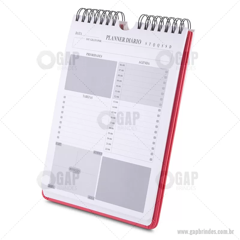 Caderno Planner com capa em PU 2 mm, 90 folhas 95 g/m², páginas para preenchimento diário, incluindo seções de prioridades, agenda do dia, tarefas e horários para refeições. Peso do Produto: 0,382kg Dimensão do Produto: 22,5x15,7cm - - GAPCAD036