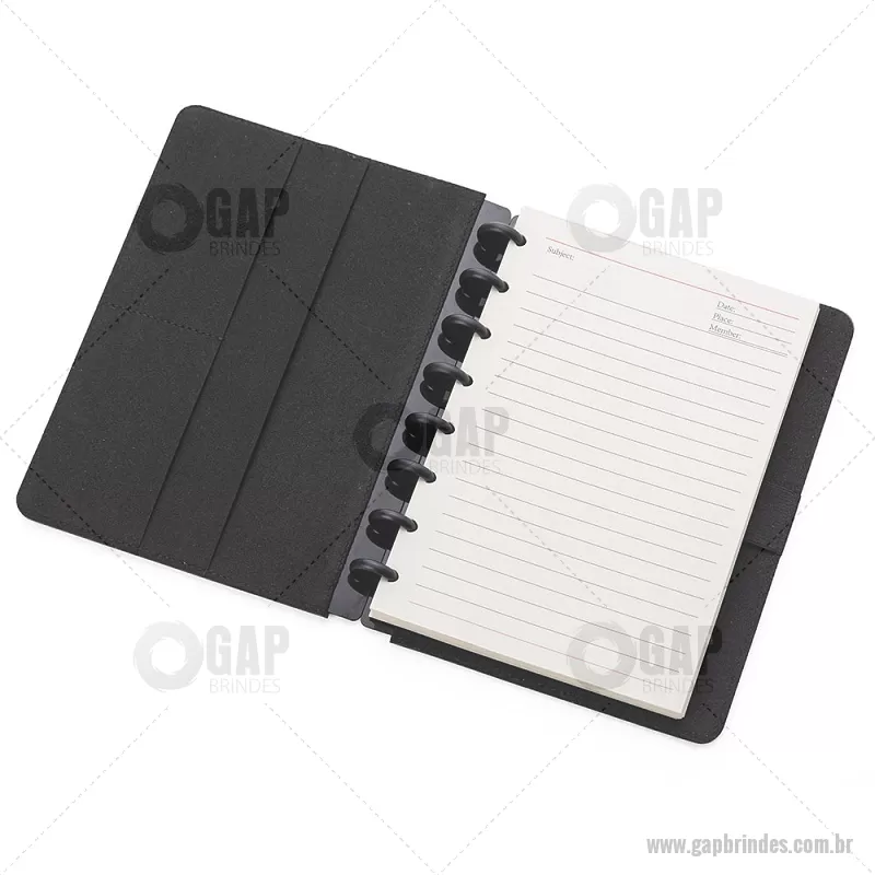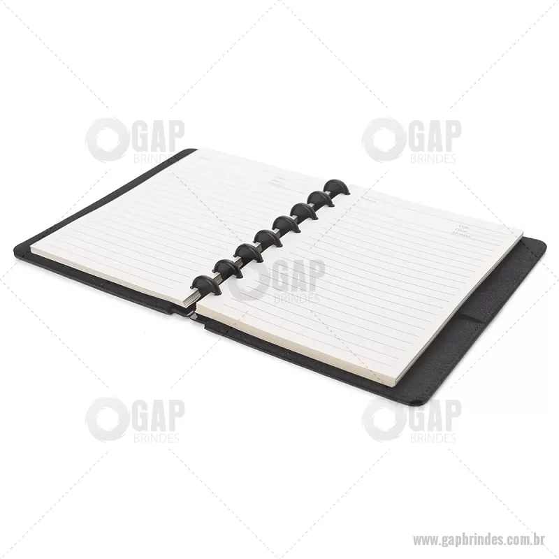 Caderno de anotações com capa dura em material sintético, contendo: Miolo de 80 folhas pautadas na cor bege; Porta Canetas; Porta Cartões; Obs.: As folhas do miolo são destacáveis. Dimensão do produto: 22,3x18,0x2,1cm (AxLxP) Peso do Produto: 0,438kg - - GAPCAD025