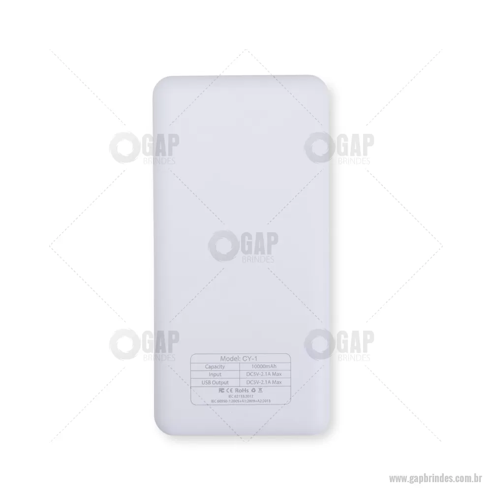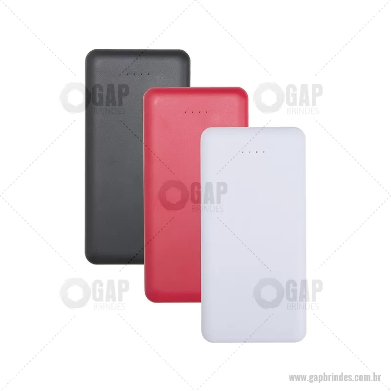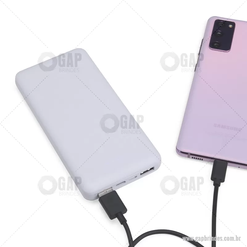 Power Bank 10.000mAh com Indicador LED Descrição: Power bank com estrutura em plástico com potência de 10.000mAh e quatro luzes de LED para indicar o status de carga do próprio carregador portátil. Possui quatro entradas diferentes: duas portas USB, uma porta Micro USB e outra USB-C. Altura : 14 cm x Espessura : 1,5 cm x Comprimento : 7 cm Peso aproximado (g): 243 - - GAPTEC531