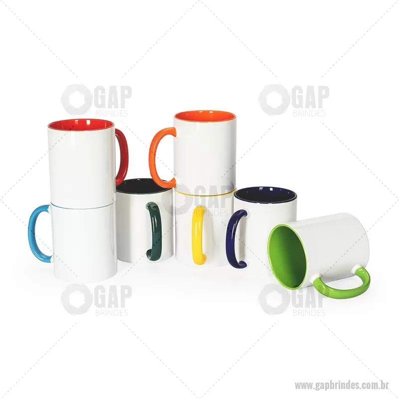 Caneca em cerâmica branca com capacidade de 330ml, ideal para sublimação e personalização. Possui acabamento brilhante que garante excelente fixação e definição das cores na estampa. Disponível também na versão bicolor, com interior e alça coloridos, agregando mais destaque e variedade ao produto. Indicada para uso com bebidas quentes ou frias, sendo perfeita para brindes, presentes personalizados ou revenda. - - GAPCANP002
