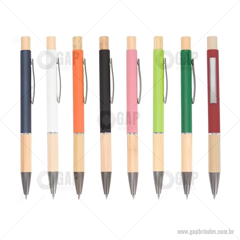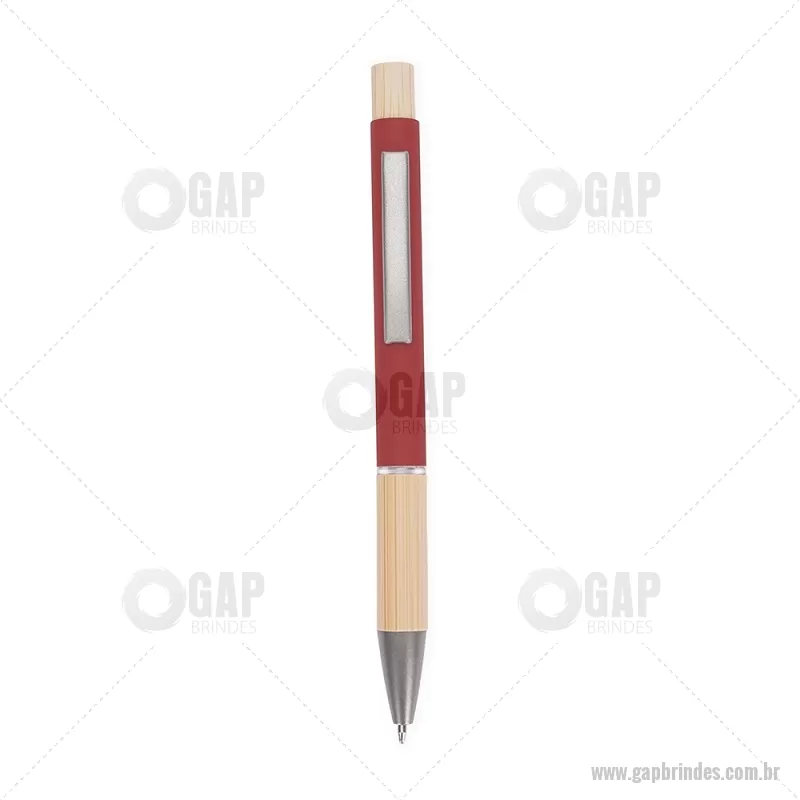 Caneta esferográfica azul 1,0 mm com corpo metálico, detalhes em bambu e acionamento por clique. Leve e confortável, proporciona escrita precisa no dia a dia. - - GAPCMT296