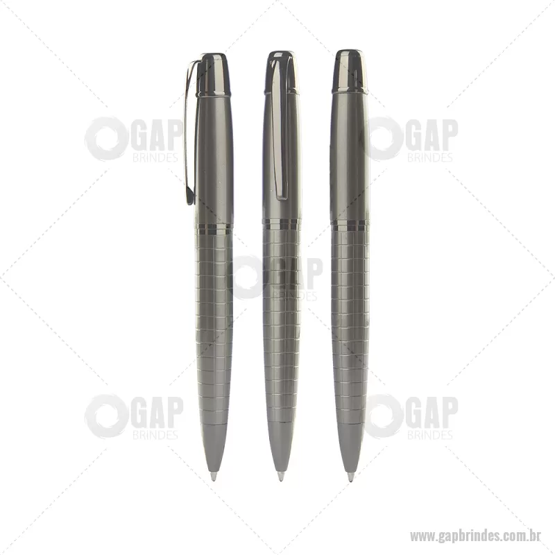 Caneta metálica esferográfica twist com escrita em azul. Dimensão Produto: 14,0xø1,3cm (AxøD) Peso do Produto: 0,033kg - - GAPCMT170