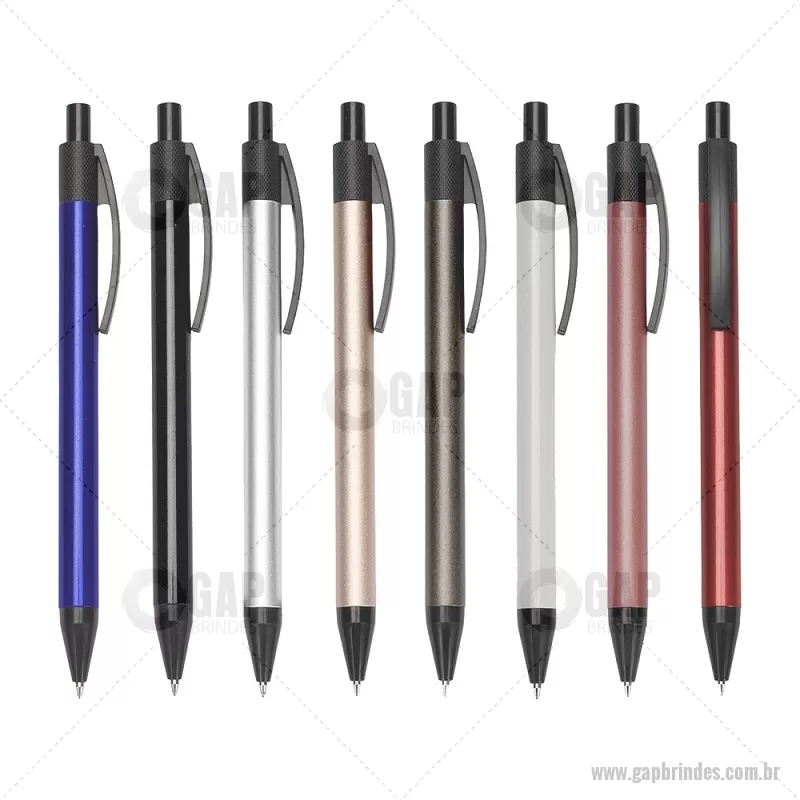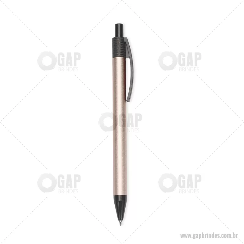 Caneta com corpo em metal, ponteira e clip em plástico, equipada com acionamento por clique. Possui carga esferográfica azul de 1,0 mm, garantindo escrita suave, leve e precisa para o uso diário. - - GAPCMT301