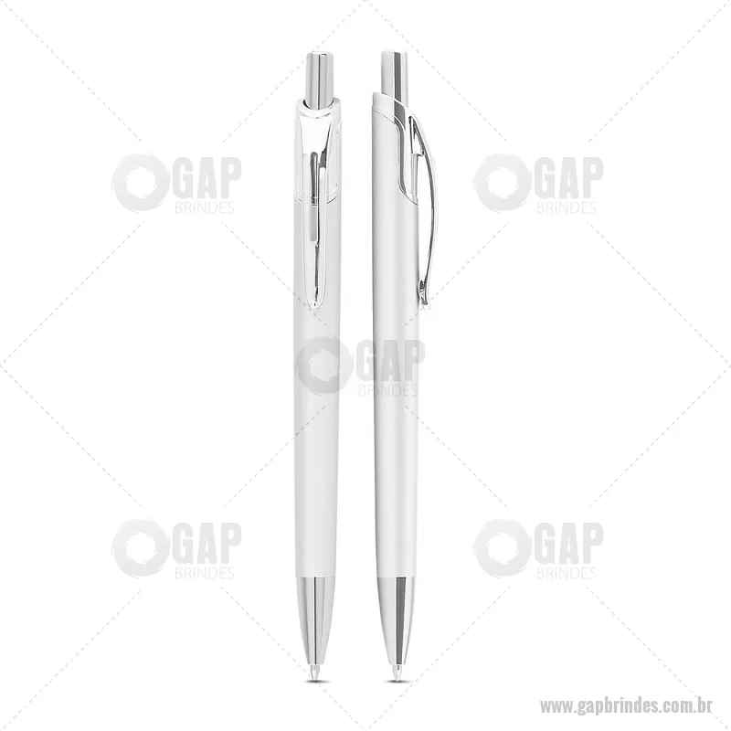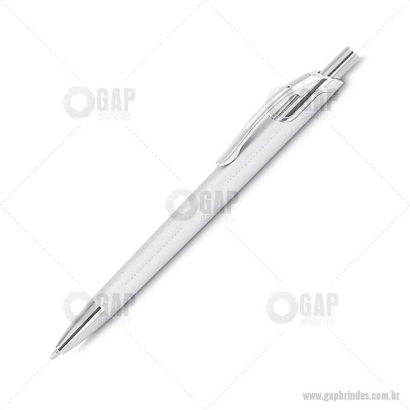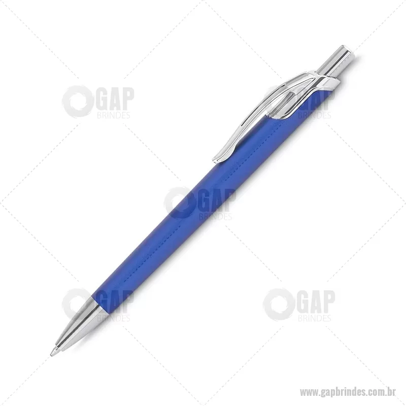 Caneta com corpo em alumínio reciclado, acionador e clipe cromado, escrita esferográfica em azul. Peso do Produto: 0,016kg Dimensão do Produto: 14ø1cm - - GAPCMT305