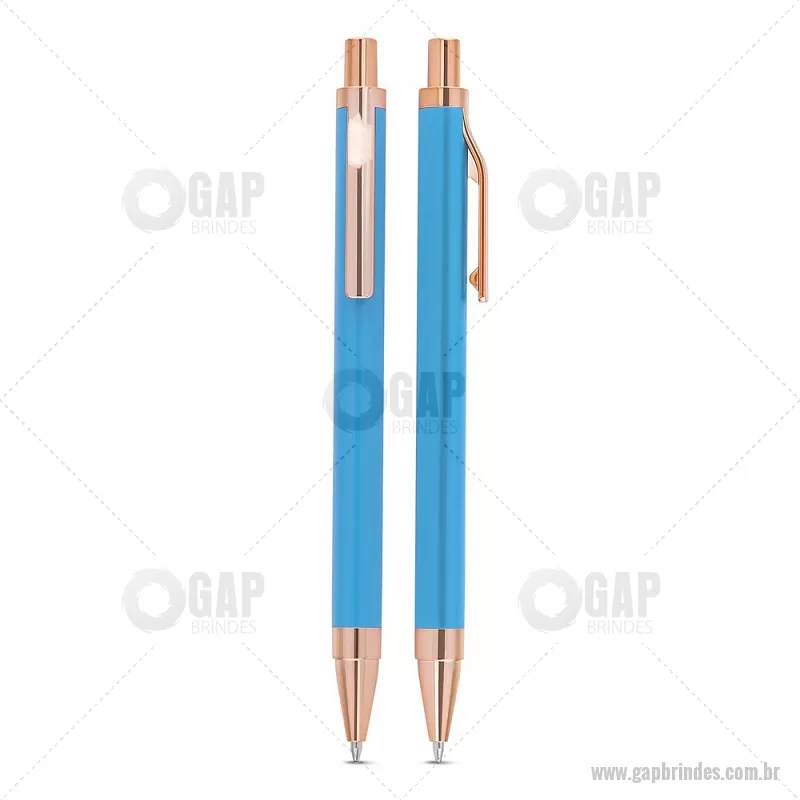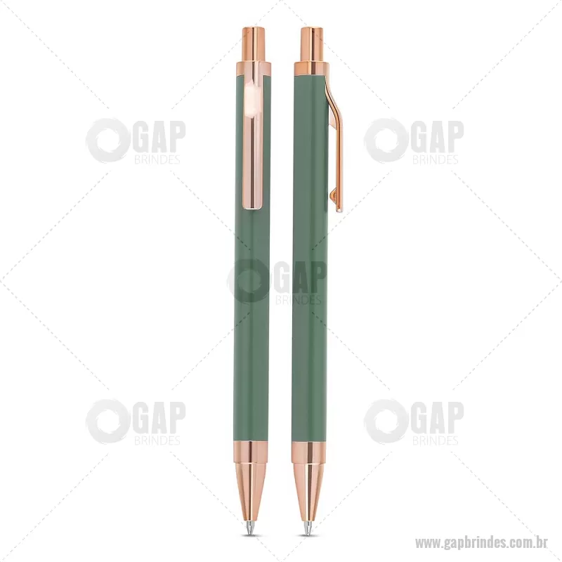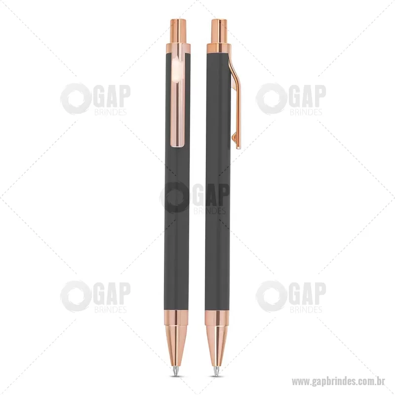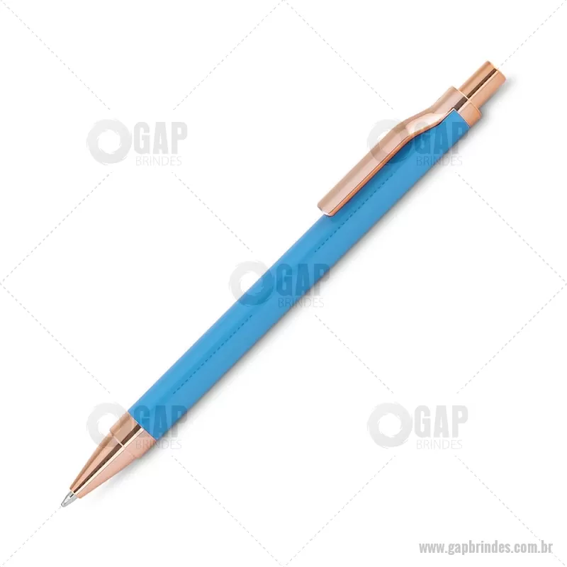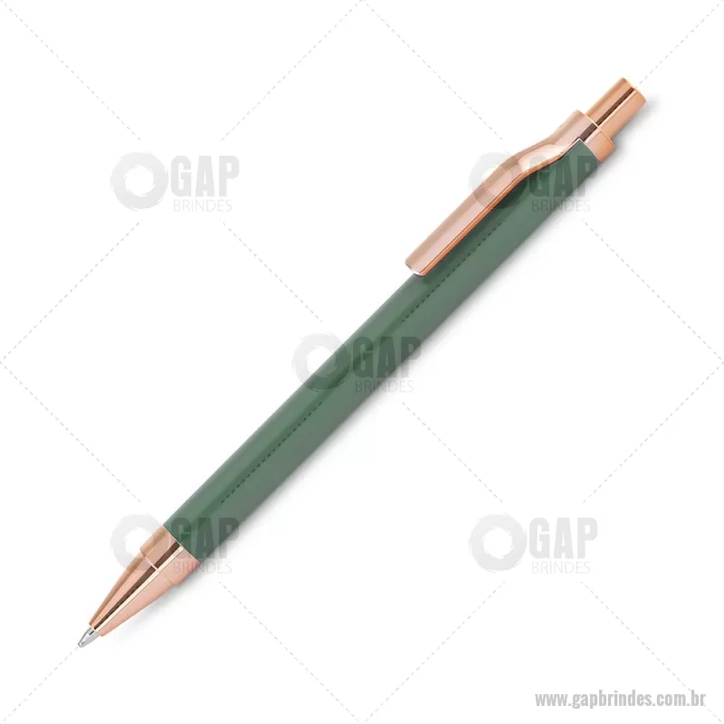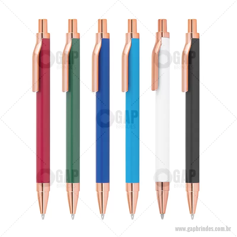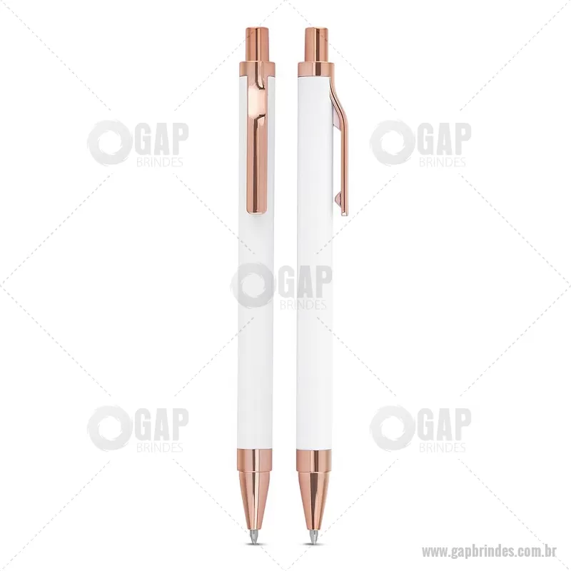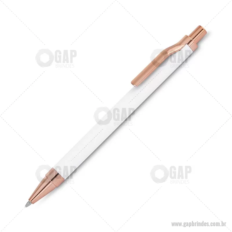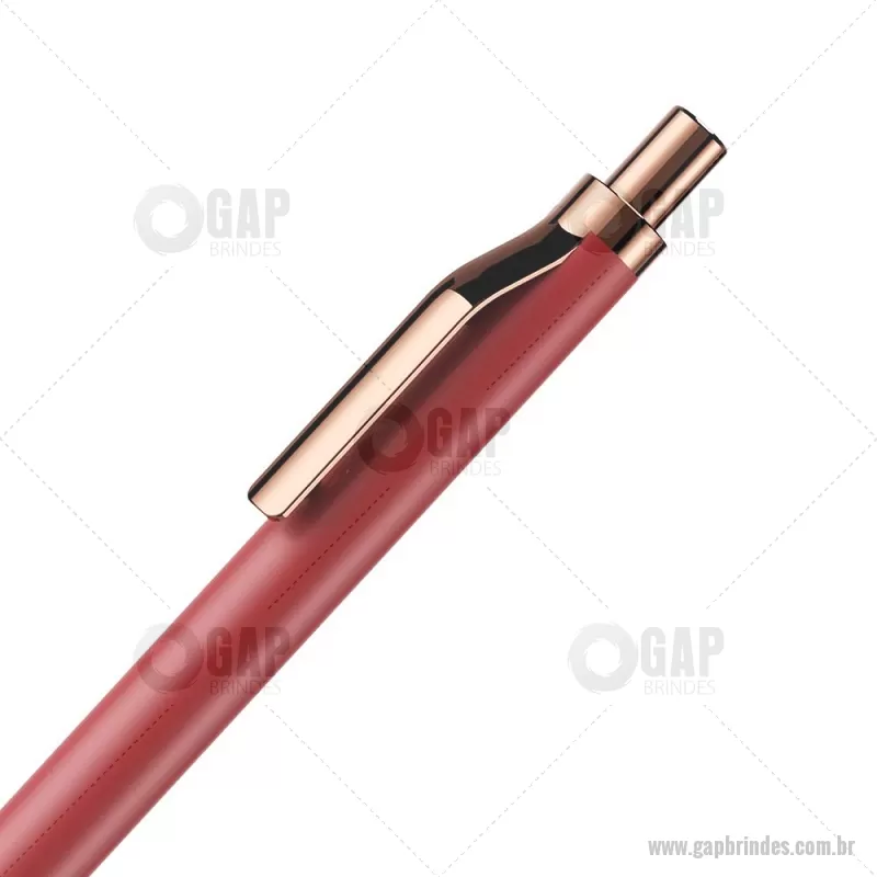 Caneta esferográfica com corpo em alumínio reciclado, acionador e clipe em acabamento rosé/bronze. Peso do Produto: 0,014kg Dimensão do Produto: 13,8xø1cm - - GAPCMT307