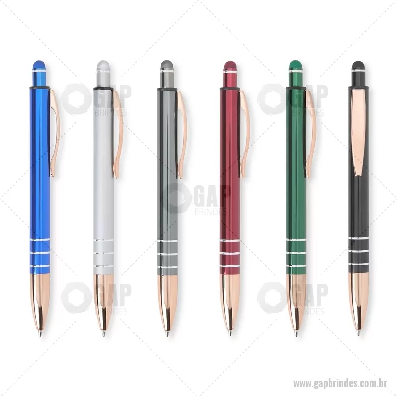 Caneta Metal Touch Caneta metálica com acionador touch, clipe metálico e ponteira plástica. Carga esferográfica azul 1.0mm e acionamento por clique. Largura : 1,6 cm x Comprimento : 14,4 cm Peso aproximado (g): 17 - - GAPCMT291