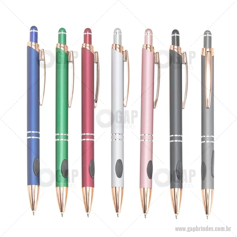 Caneta Metal Touch A elegância e o conforto combinados em uma única caneta esferográfica para garantir uma escrita mais agradável através da sua construção metálica e seu par de grips em borracha, além de ponta e clipe em plástico. Sua carga azul de 1.0 mm possui acionamento por clique com ponteira emborrachada que que permite seu uso como uma caneta touch para interação com smartphones, tablets e demais dispositivos de telas touchscreen. Largura : 1,5 cm x Circunferência : 4,5 cm x Comprimento : 14 cm Peso aproximado (g): 17 - - GAPCMT293