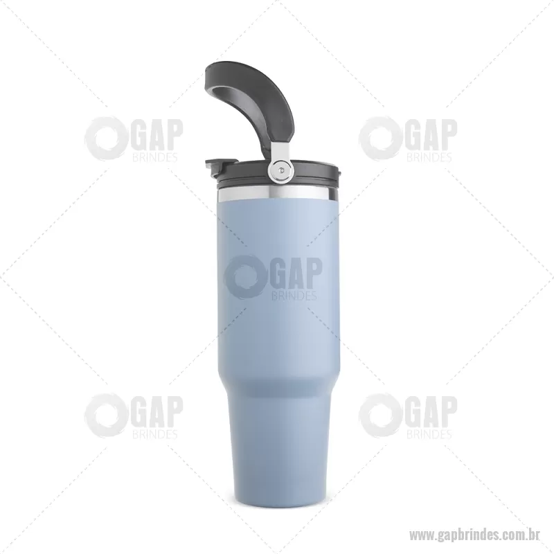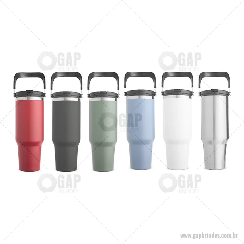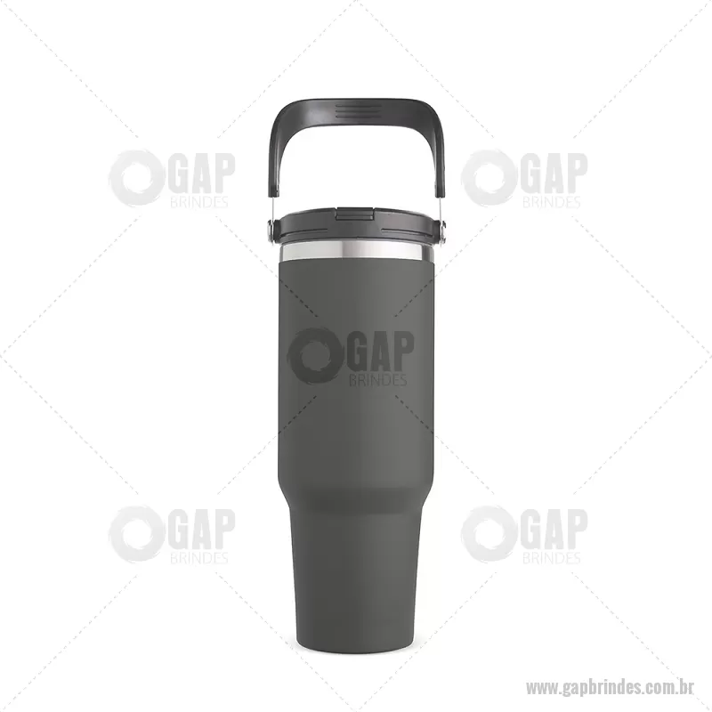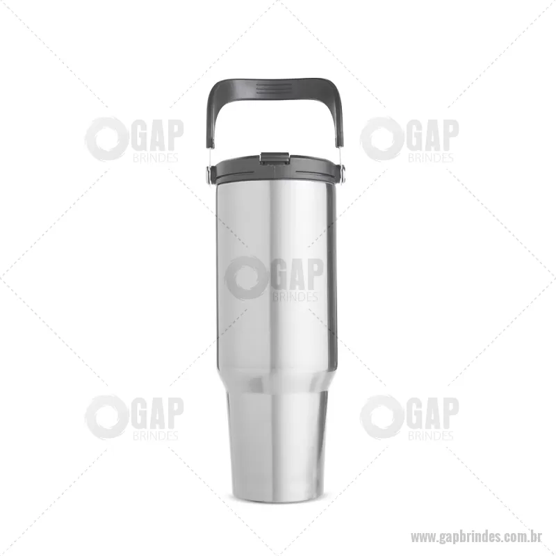 Copo térmico de 1,25 L em inox com parede dupla, ideal para manter a temperatura das bebidas por mais tempo. Possui tampa plástica rosqueável com vedação a vácuo, canudo plástico removível e alça em inox com revestimento em plástico para transporte seguro e prático. - - GAPCPO147