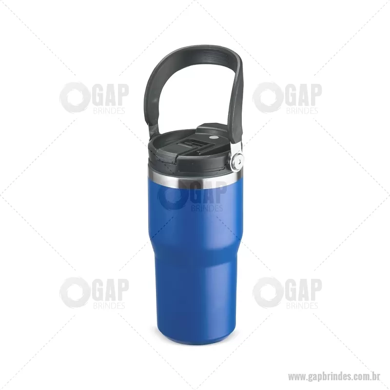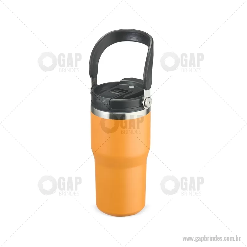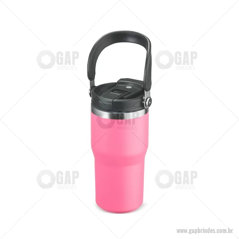 Copo térmico de 600 ml em inox com pintura eletrostática e parede dupla com vedação a vácuo, ideal para manter a temperatura das bebidas por mais tempo. Possui tampa rosqueável com bico flip e proteção para o bocal, canudo interno removível e alça fixa para transporte. Prático e resistente para o dia a dia. - - GAPCPO149