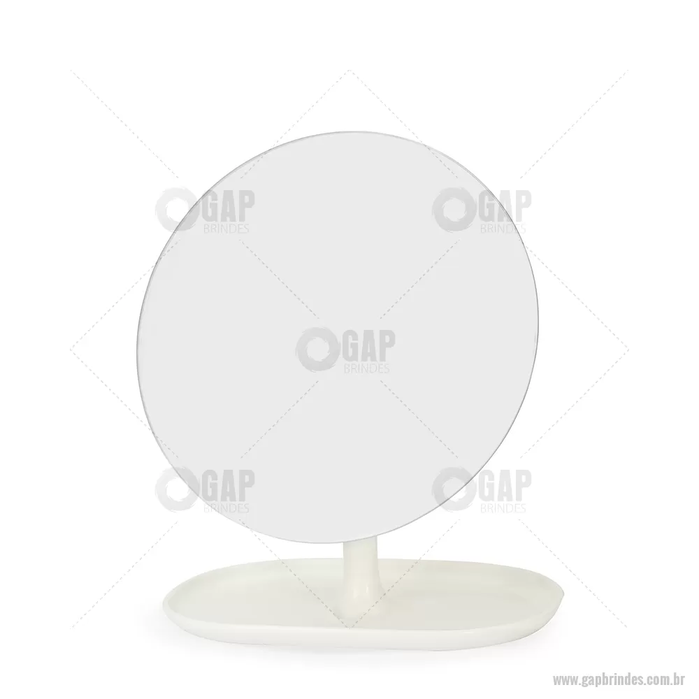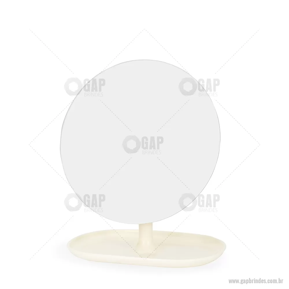 Espelho de Mesa Plástico Descrição: Espelho de mesa com estrutura compacta em plástico de fácil montagem. Conta com base fixa e pedestal giratório em 360 graus que permite ajuste prático em diferentes ângulos e posições. Altura : 25 cm x Largura : 10,7 cm x Comprimento : 15,8 cm Tamanho total aproximado (CxL): Diâmetro: 16 cm Peso aproximado (g): 195 - - GAPFEM118