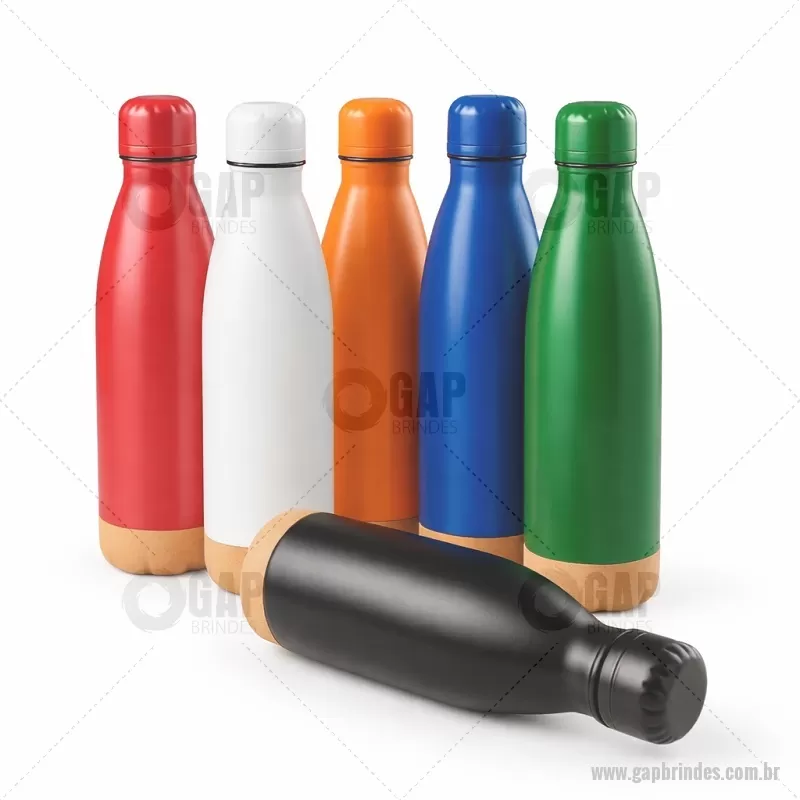 Garrafa térmica com capacidade de 500 ml, produzida em aço inox e base em cortiça, que agrega charme e estabilidade ao uso. Conta com parede dupla e vedação a vácuo, garantindo maior conservação da temperatura de bebidas quentes ou frias por mais tempo. Possui tampa plástica rosqueável, prática e segura, ideal para o dia a dia com um toque de estilo e funcionalidade. - - GAPGAT171