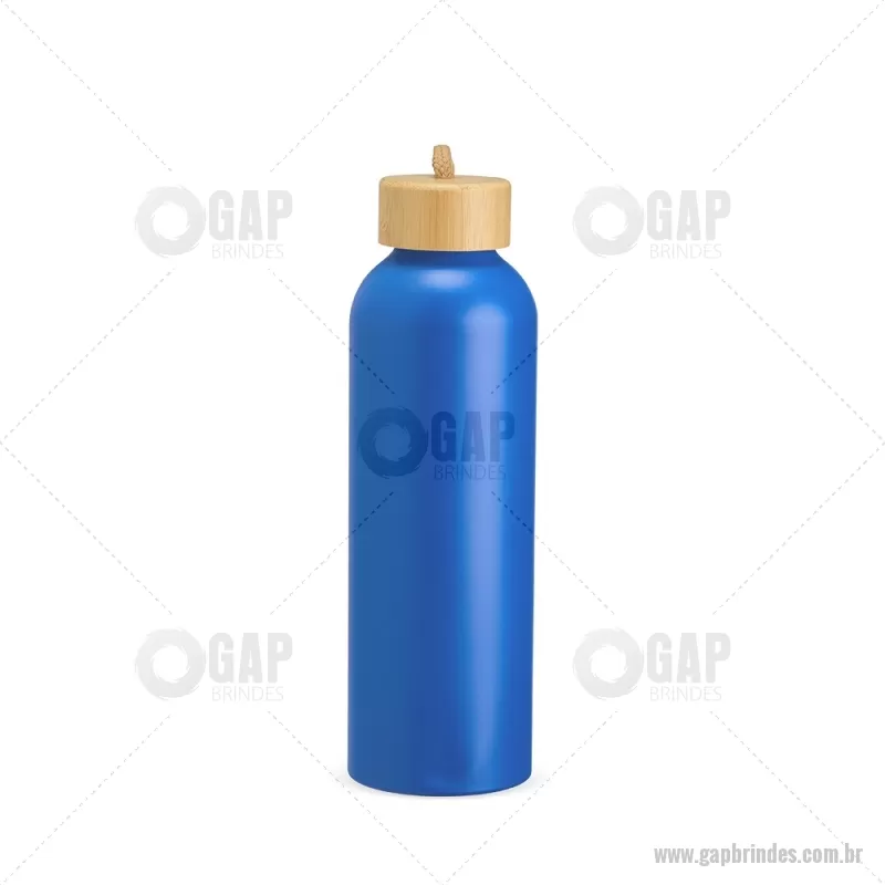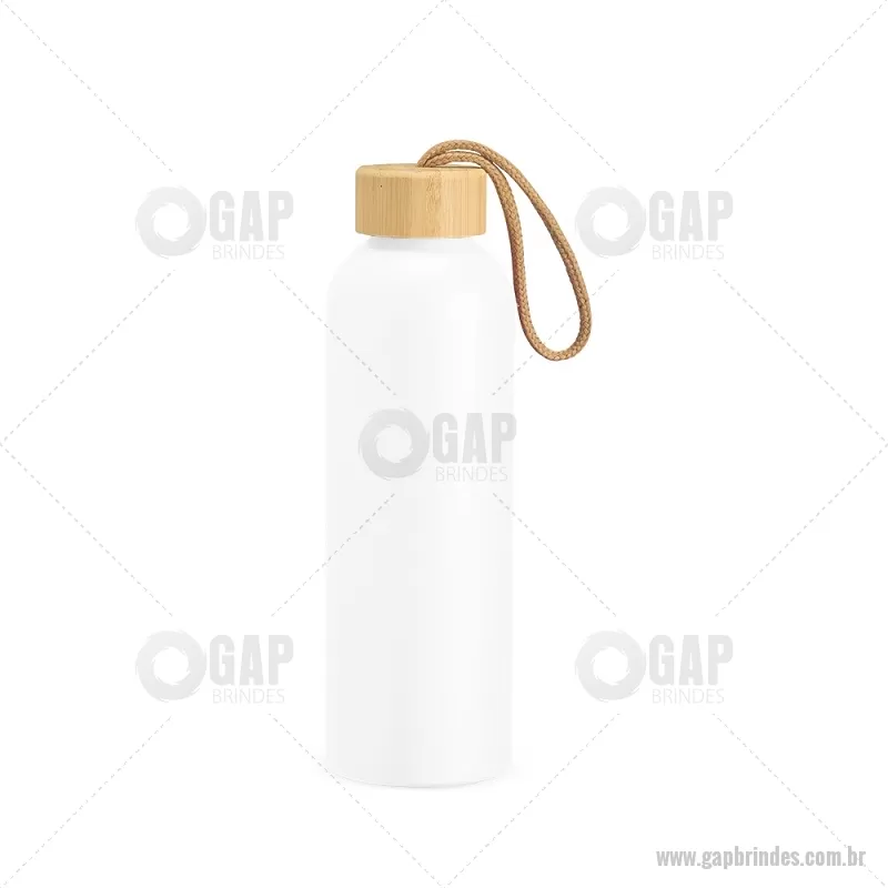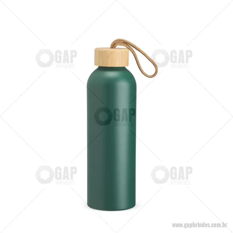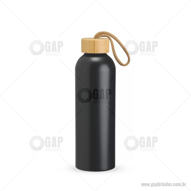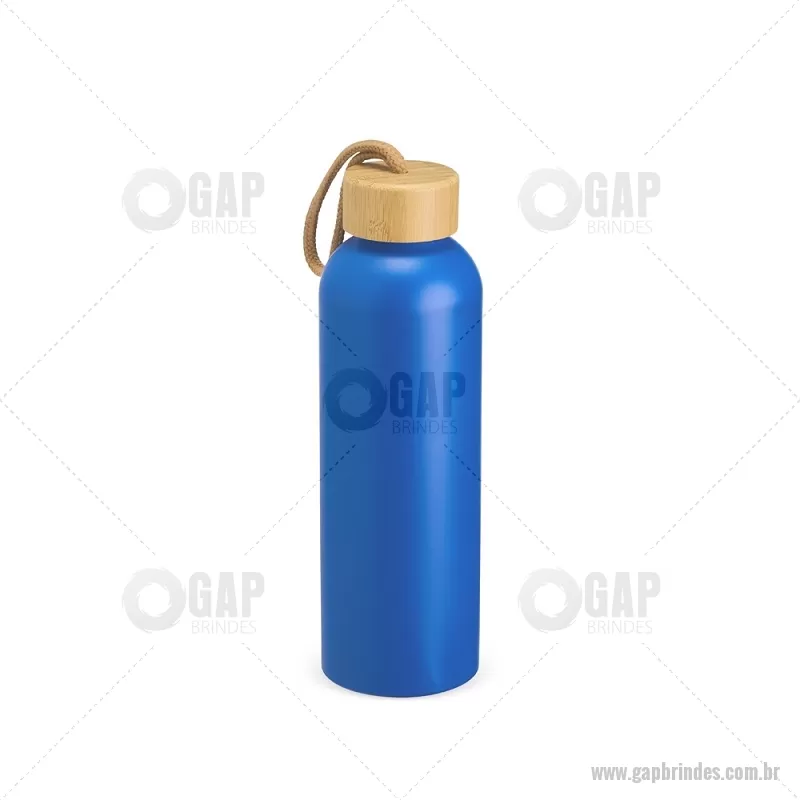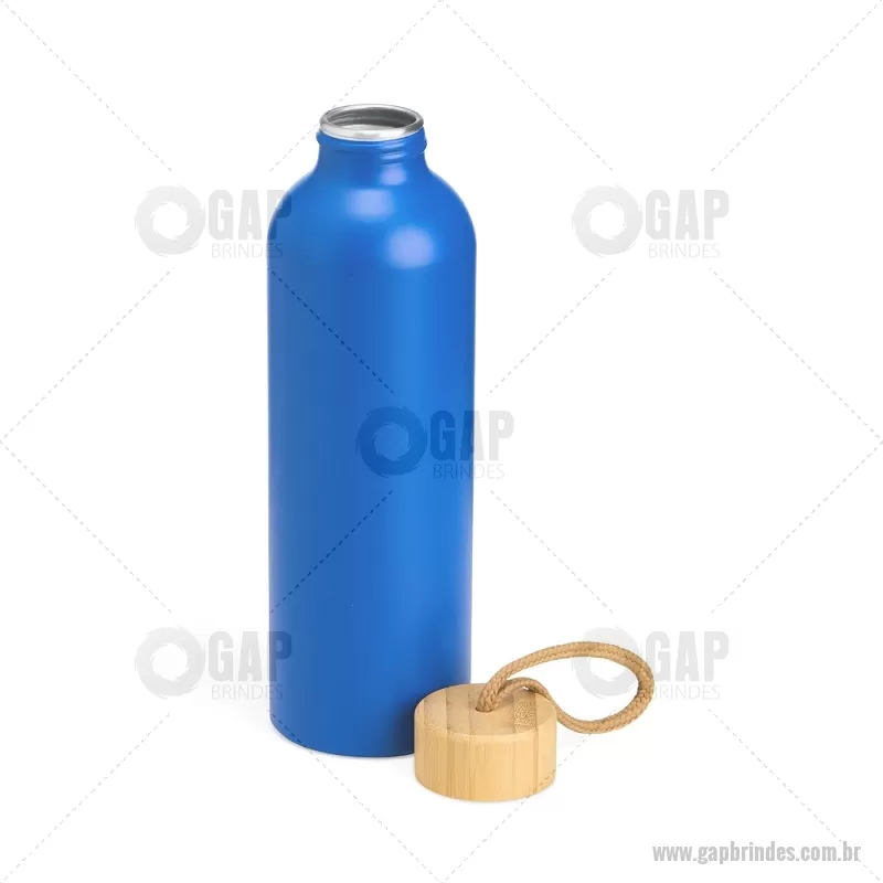 Garrafa em alumínio com capacidade máxima de 800ml. Possui tampa rosqueável em bambu com alça de algodão para facilitar o transporte. Altura : 23,5 cm x Largura : 7 cm x Circunferência : 23 cm Peso aproximado (g): 111 - - GAPGAR155
