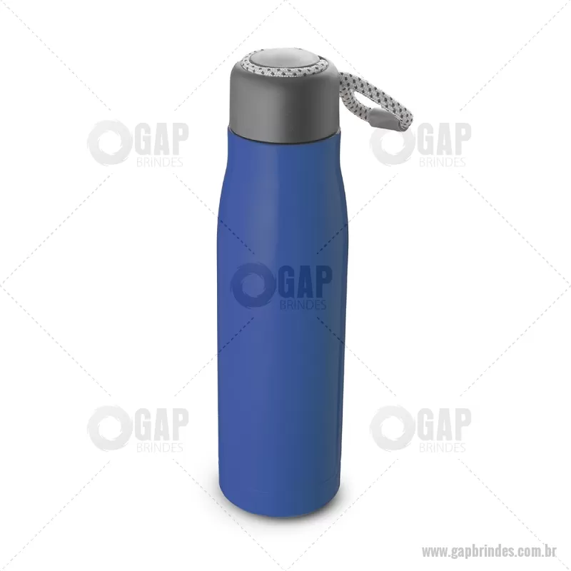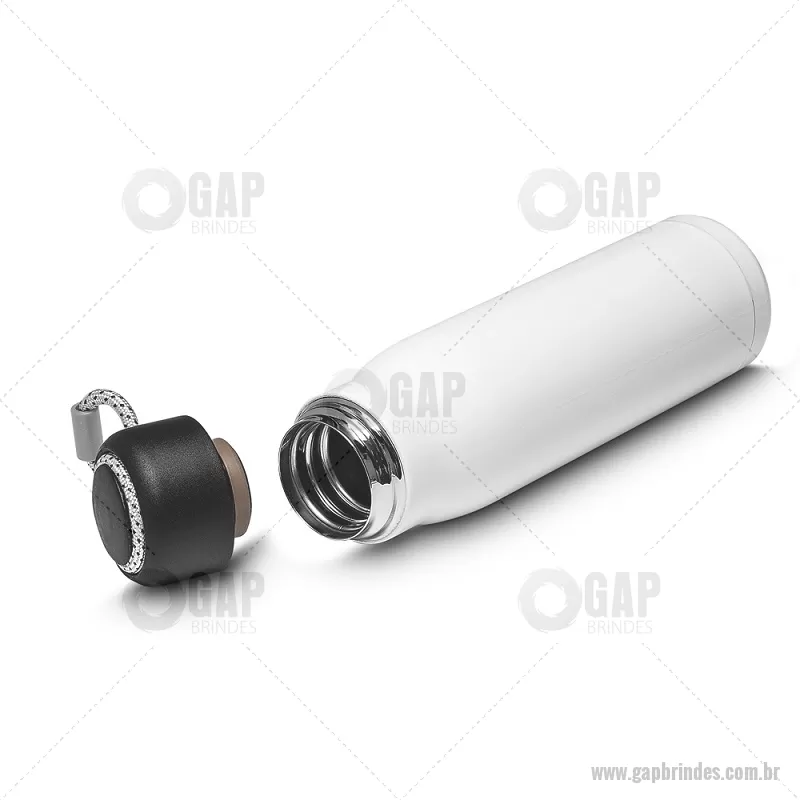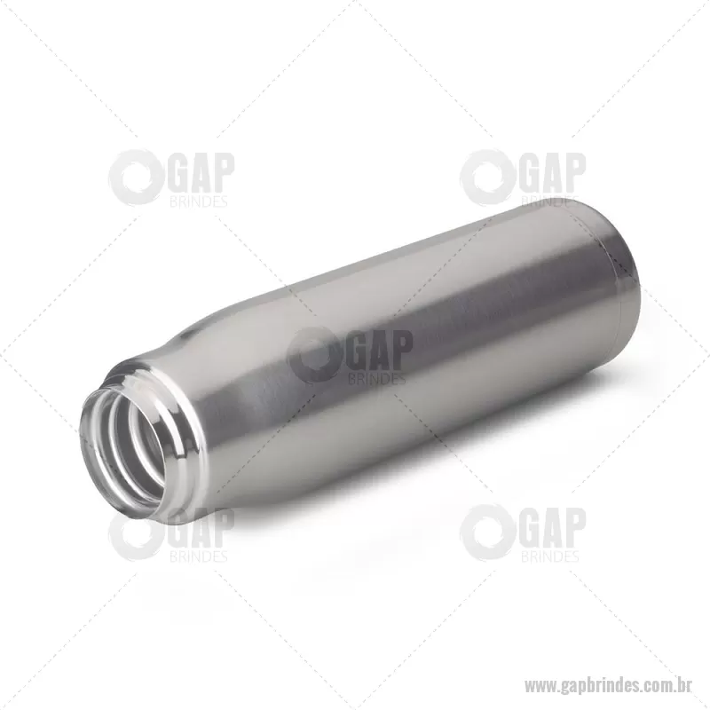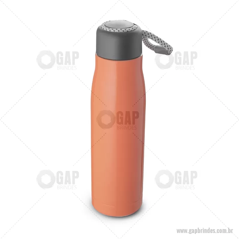 Garrafa térmica em aço inox 550ml brilhoso com parede dupla isolada a vácuo, com alça em corda para facilitar o transporte. Tampa plástica rosqueável e anel de silicone para vedação. Conserva líquidos : ??8 horas ??12 horas Dimensão do produto: 25xø7cm (AxøD) Peso do produto: 0,252kg - - GAPGAT101