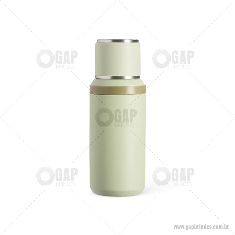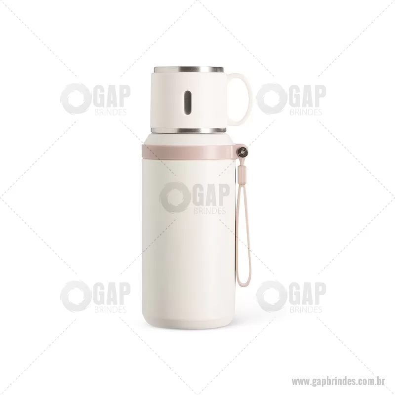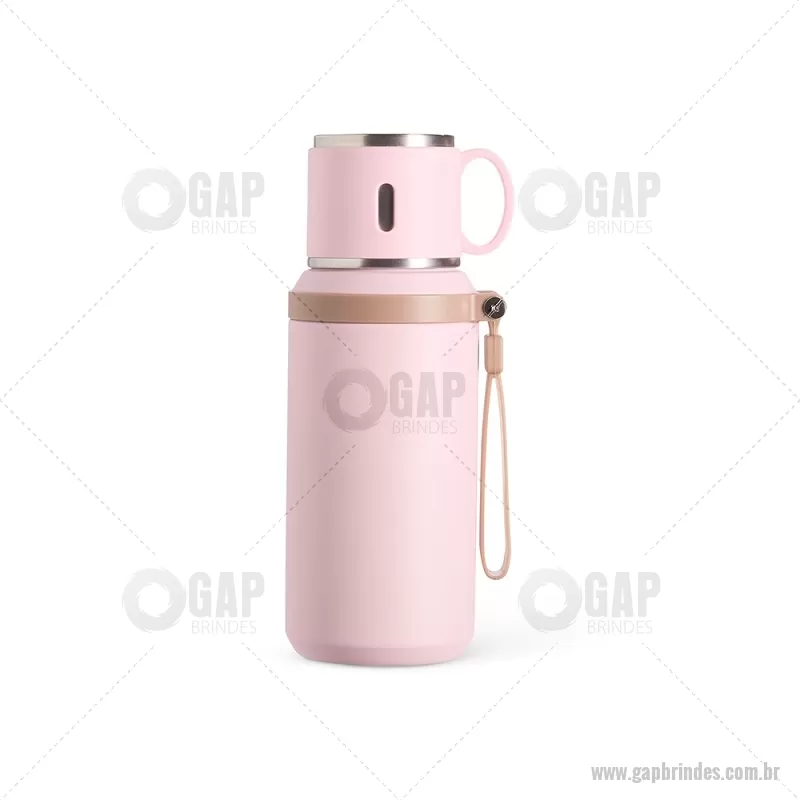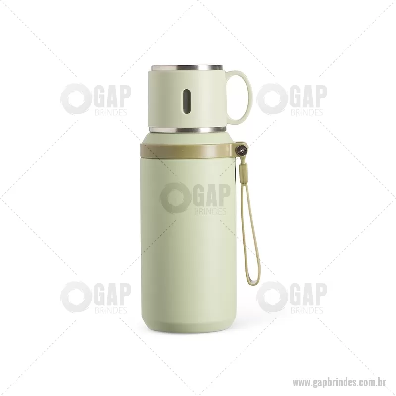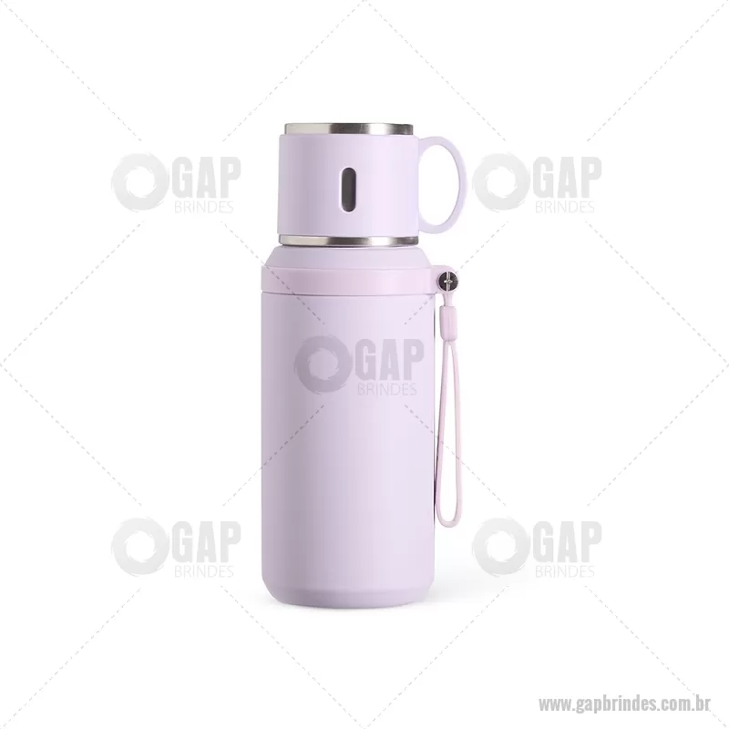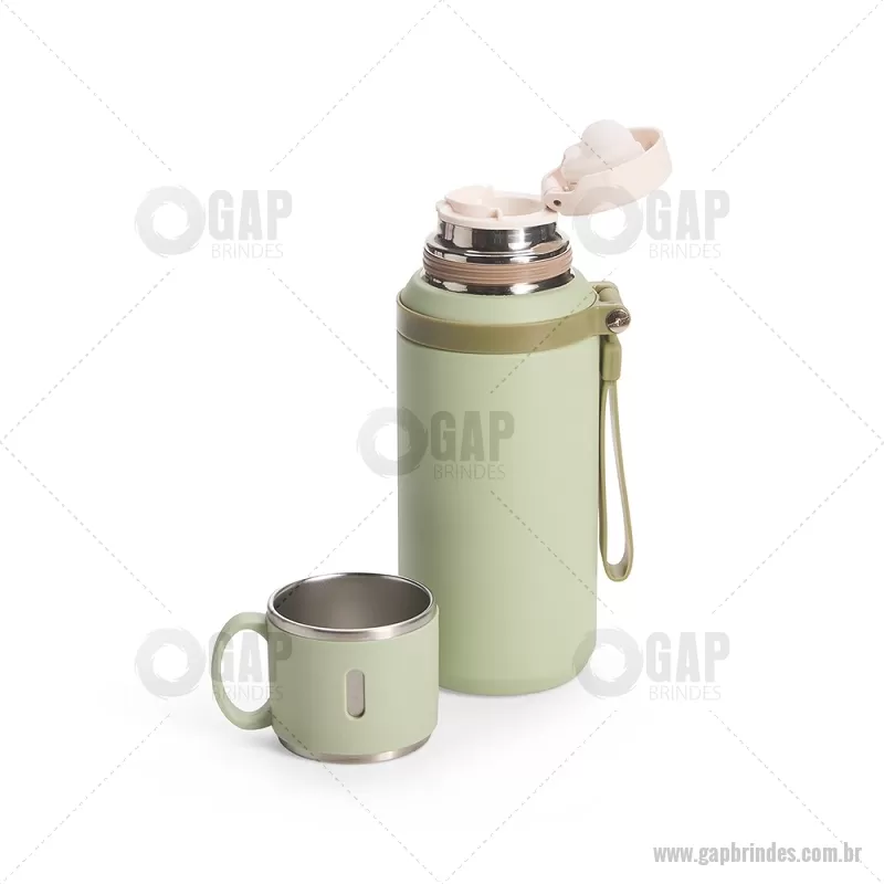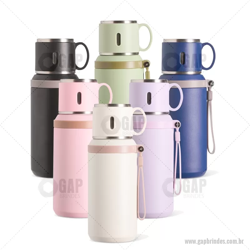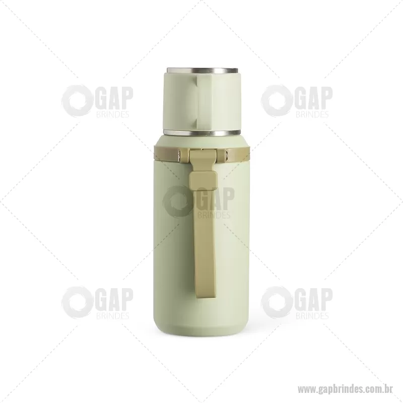 Garrafa térmica de 600 ml confeccionada em inox com acabamento em pintura eletrostática. Possui parede dupla para melhor conservação térmica, tampa interna rosqueável com anel de vedação, abertura do bocal por botão e infusor integrado. A tampa externa funciona como caneca e a alça emborrachada facilita o transporte, tornando o uso prático no dia a dia. - - GAPGAT160