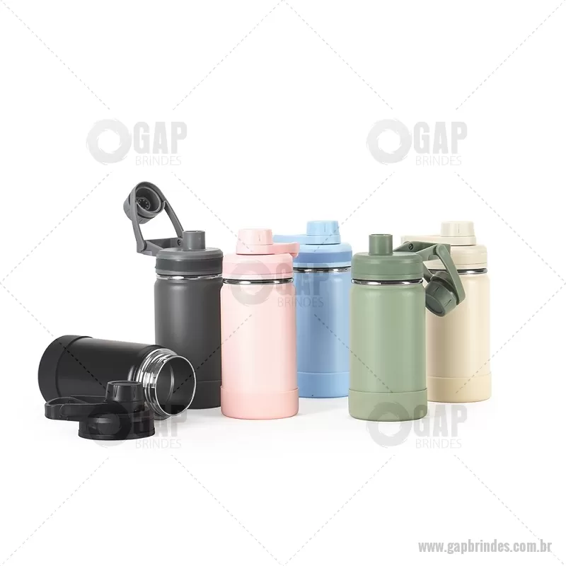 Garrafa Térmica 350ml Descrição: Garrafa térmica em inox, pintura eletrostática e capacidade para até 350ml. Conta com estrutura de parede dupla e vedação a vácuo, permitindo conservar a temperatura de líquidos por mais tempo. Possui tampa rosqueável com protetor para o bocal e alça fixa para facilitar o transporte. Acompanha protetor para a base em silicone. Altura : 18,2 cm x Largura : 10 cm x Circunferência : 23 cm Peso aproximado (g): 238 - - GAPGAT158
