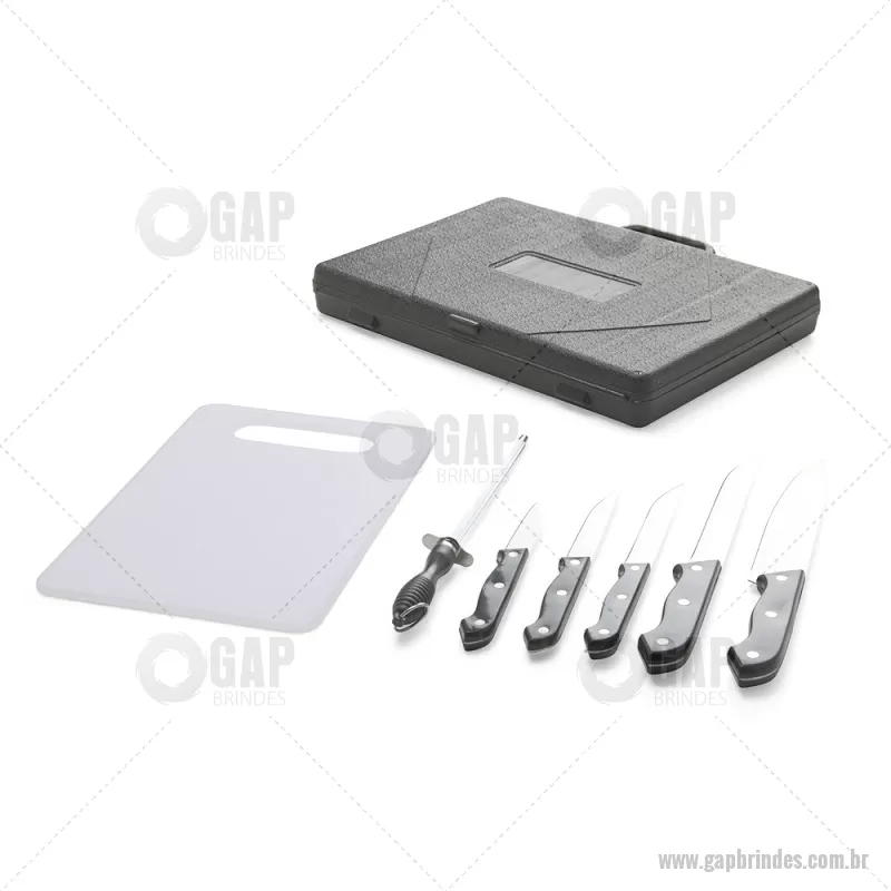 Kit Churrasco 7 Peças Um kit completo para ajudar na preparação de um churrasco inteiro e deixar o momento de confraternização ainda melhor. Este conjunto traz 7 itens, incluindo 1 tábua em plástico, 1 chaira em aço inox, e 5 facas em tamanhos diferentes do mesmo material: 1 faca de legumes (com 3 polegadas de lâmina), 1 faca de cozinha (com lâmina de 4 polegadas), 1 faca de desossar (com lâmina de 5 polegadas), 1 faca trinchante (com lâmina de 7 polegadas) e 1 faca peixeira (com lâmina de 8 polegadas). Tudo isso acompanhada por uma elegante maleta para facilitar a organização e o transporte do kit. Altura : 27cm x Comprimento : 36 cm Peso aproximado (g): 929 - - GAPKCH093