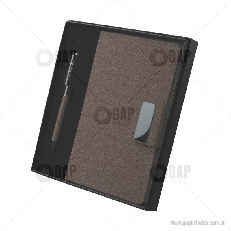 Kit escritório A5 em PU e fibra de café ou chá e Caneta Metalica Kit de Escritório composto por caderno tamanho A5, com capa em PU e detalhe em fibra de chá ou café, contendo 80 folhas pautadas de 70g/m². Acompanha caneta metálica com acabamento no mesmo material de fibra, formando um conjunto elegante e sofisticado. O kit acompanha estojo de papelão na cor preta. Peso do Produto: 0,234kg (Caderno) Peso do Produto: 0,022kg (Caneta) Dimensão do produto: 20,7x13,2cm (Caderno) (AxL) Dimensão Produto: 14xø1cm (Caneta) (AxL) Dimensão do produto: (Estojo) (AxL) 21x20,5 cm - - GAPKES081
