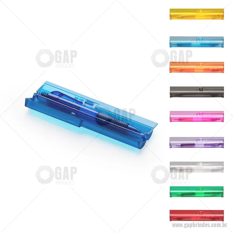 Caneta esferográfica azul 1,0 mm com acionamento por clique e grip emborrachado, oferecendo escrita confortável e precisa. - - GAPKES079