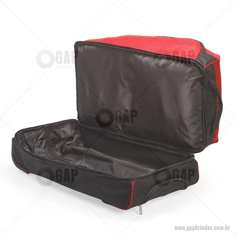 Mala versátil com capacidade de 51 litros, confeccionada em poliéster resistente à água. Possui quatro compartimentos funcionais, incluindo um espaço específico para armazenar o puxador. Oferece praticidade no transporte com alças de mão com fecho em velcro, puxador retrátil e duas rodinhas, além de contar com base reforçada e pés de apoio para maior estabilidade. Ideal para o dia a dia ou viagens curtas. - - GAPMC251