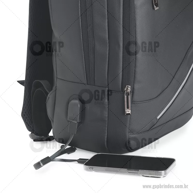 Mochila Couro Sintético 26L Mochila em couro sintético impermeável com capacidade máxima de 26 litros. Possui compartimento principal com divisória para notebook de até 15,6 polegadas, além de dois compartimentos frontais em tamanhos diferentes, bolso lateral em malha com elástico e suporte USB. Conta ainda com alça de mão e duas alças para as costas com revestimento em tecido respirável. Altura : 40 cm x Largura : 30 cm x Profundidade : 13 cm Peso aproximado (g): 540 - - GAPMC242