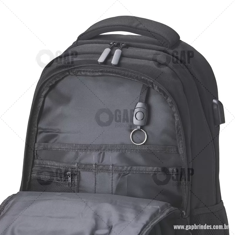 Mochila de Poliéster USB 28 litros com seis compartimentos, sendo o principal com bolso para notebook 15,6 e tablet 12,4. Com divisórias internas para acessórios e porta chave, a mochila possui adaptador USB externo, bolsos laterais telados, duas alças de mãos, área costada e alças para as costas com revestimento espumado. Altura : 43 cm x Largura : 31 cm x Profundidade : 15,5 cm Peso aproximado (g): 786 - - GAPMC248