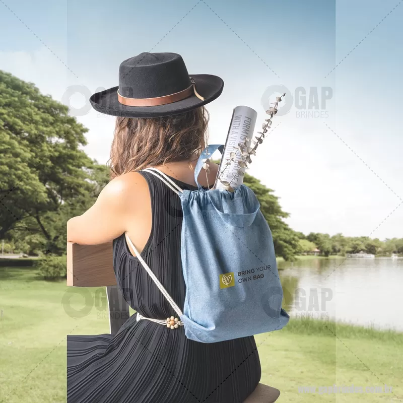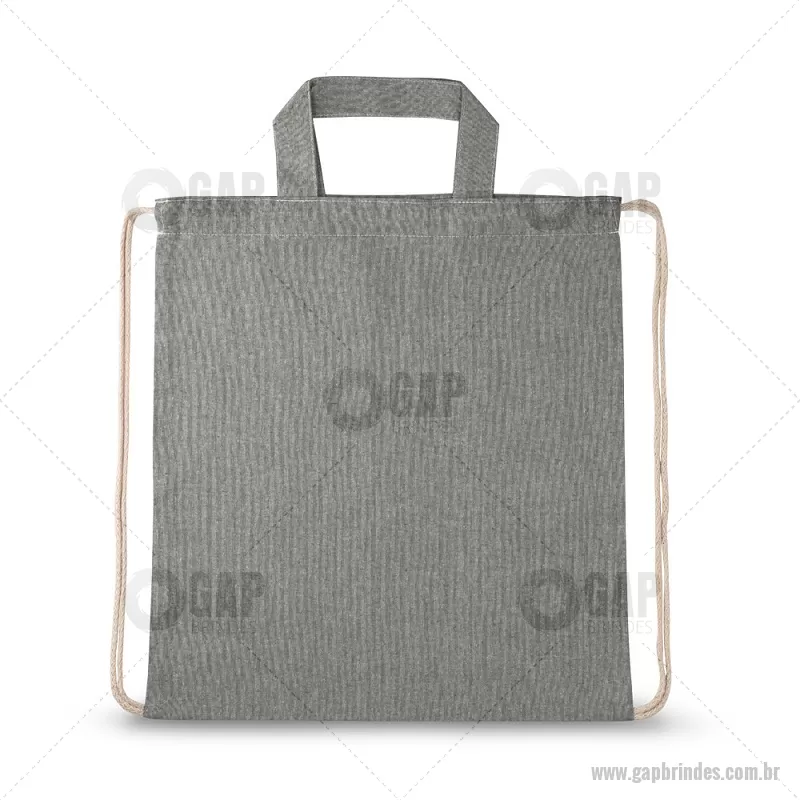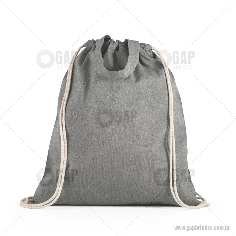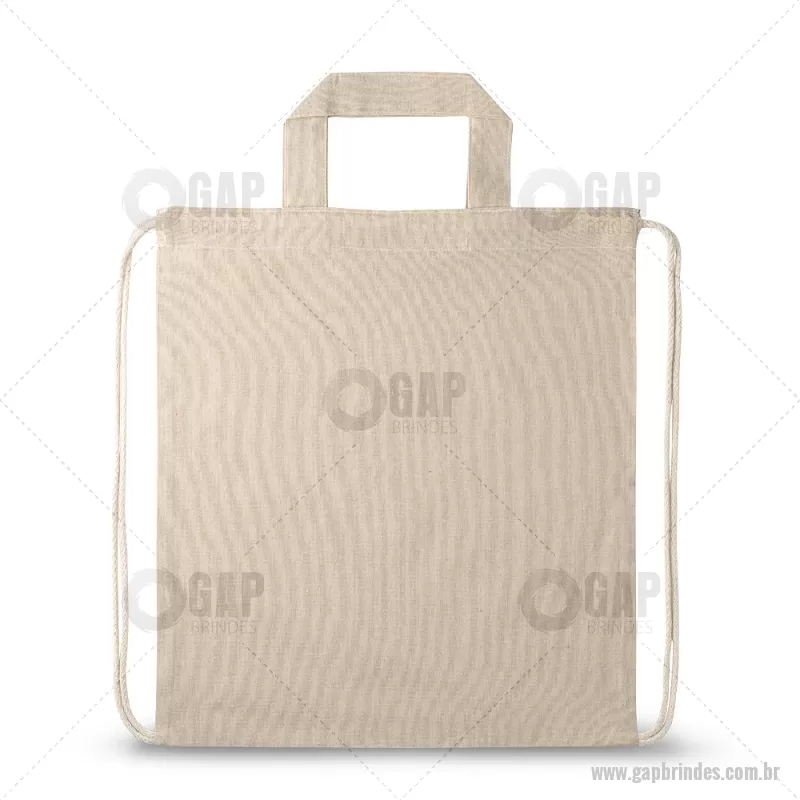 Sacola tipo mochila saco em 70% algodão reciclado e 30% poliéster reciclado (140g/m²), com alças 30 cm. O tecido é sem tingimento, e utilizado na sua cor original, sem produtos químicos de tingimento ou branqueamento, contribuindo para um menor impacto ambiental. Medidas: 370 x 410 mm Peso do Produto (g.): 80 gramas - - GAPMCS025
