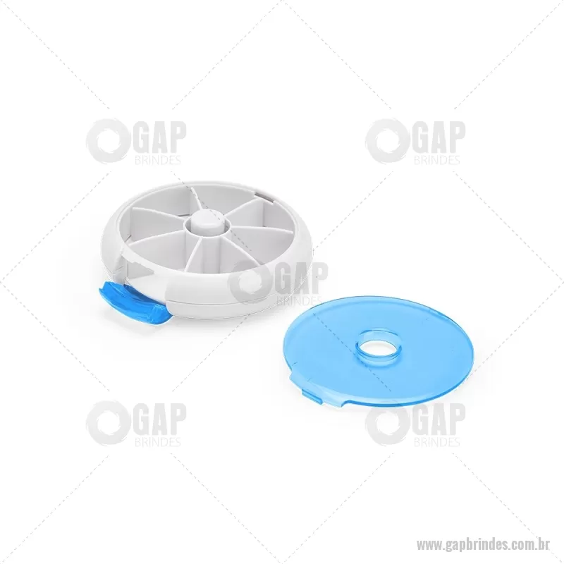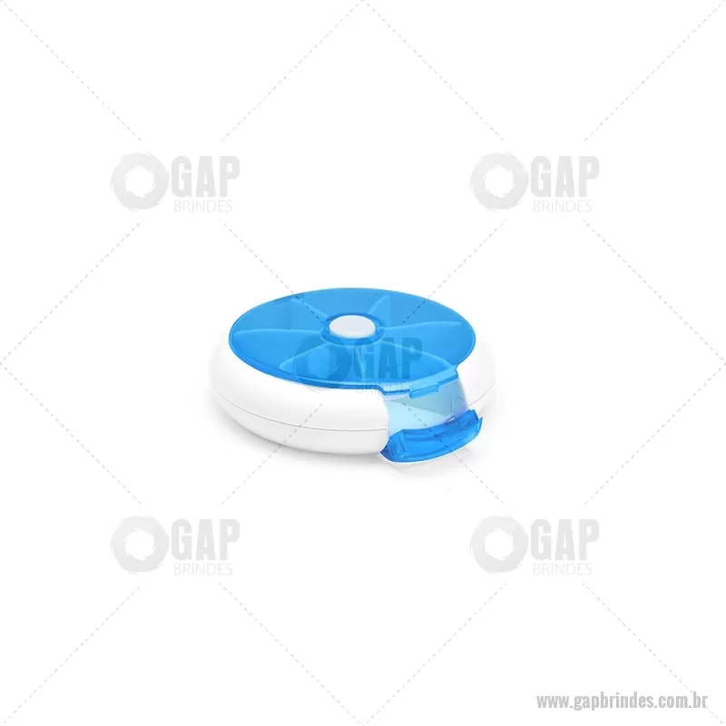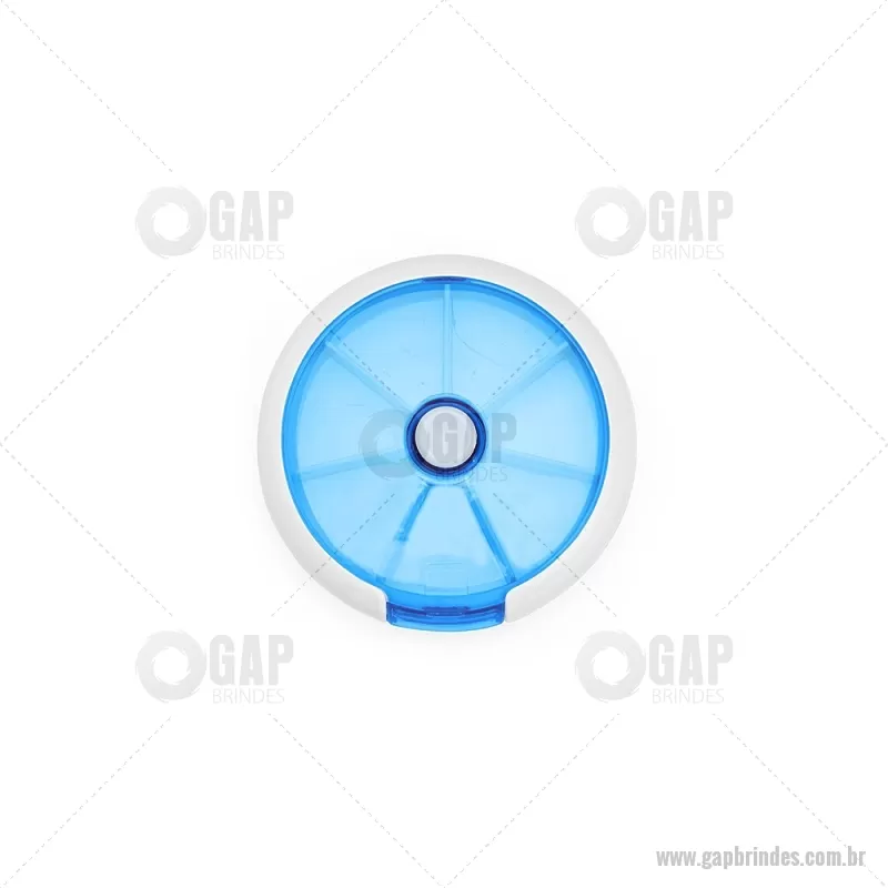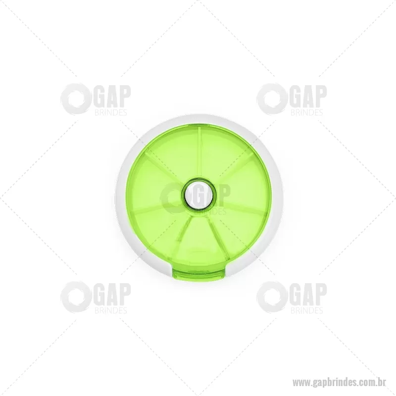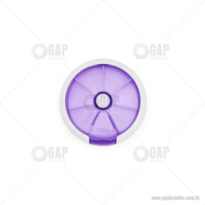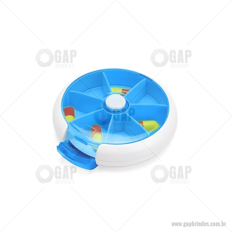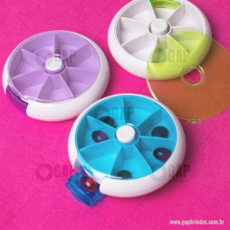 Porta-Comprimidos Plástico Descrição: Porta-comprimidos em plástico. Com design compacto, possui sete divisórias e um botão de acionamento que movimenta o mecanismo de giro de compartimentos a cada clique.permitindo o acesso ao conteúdo por meio de uma abertura lateral. Largura : 9 cm x Espessura : 2,6 cm x Comprimento : 9 cm Peso aproximado (g): 50 - - GAPPCP018