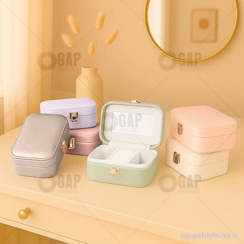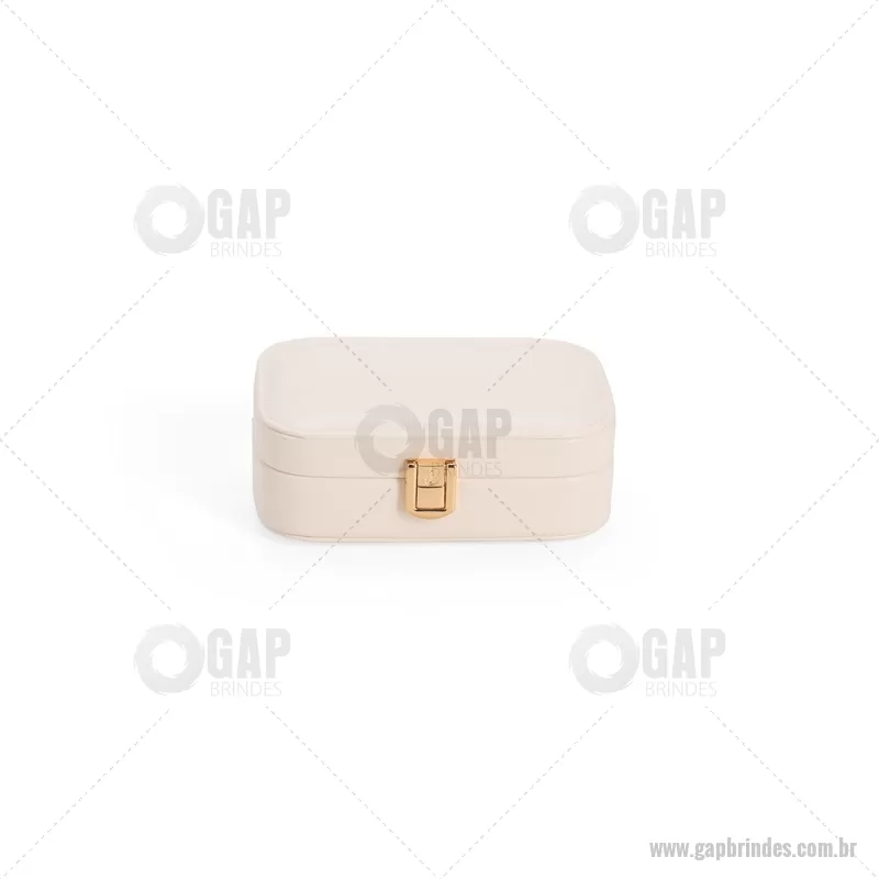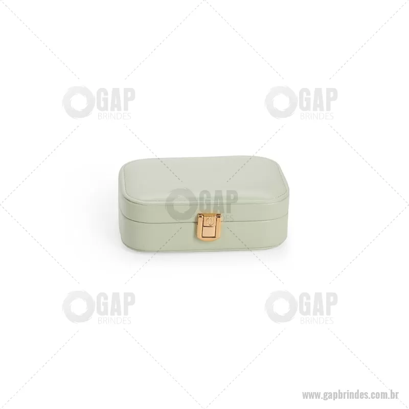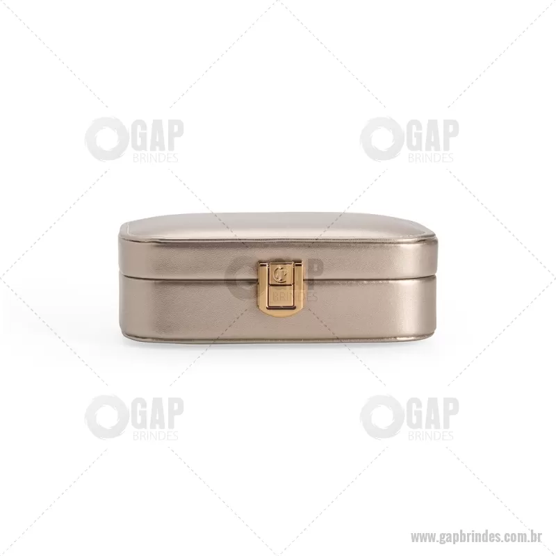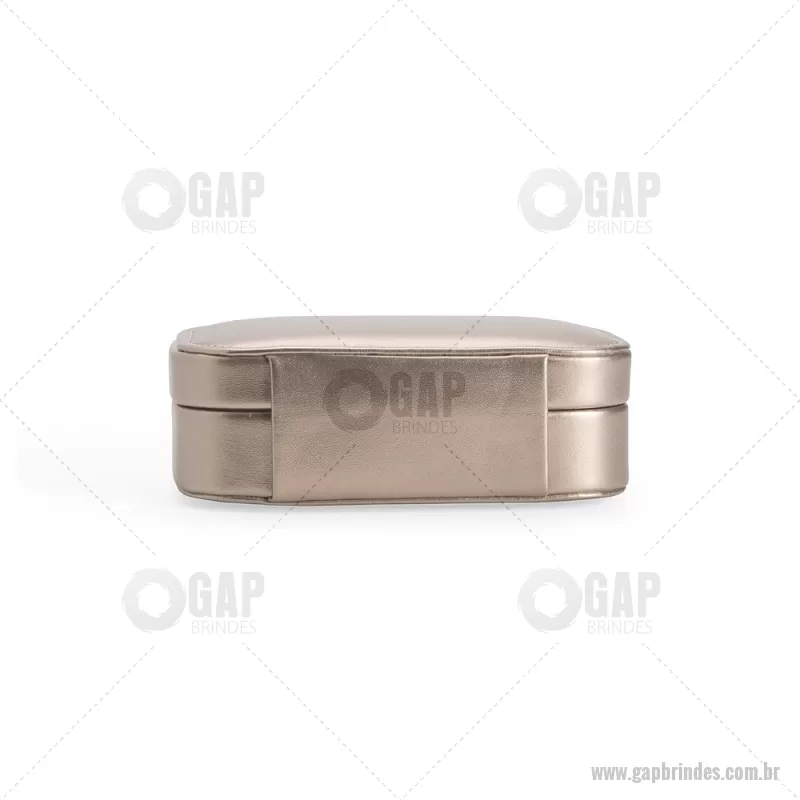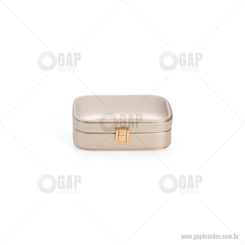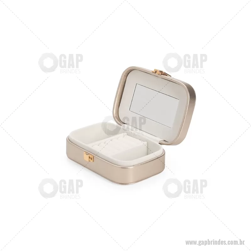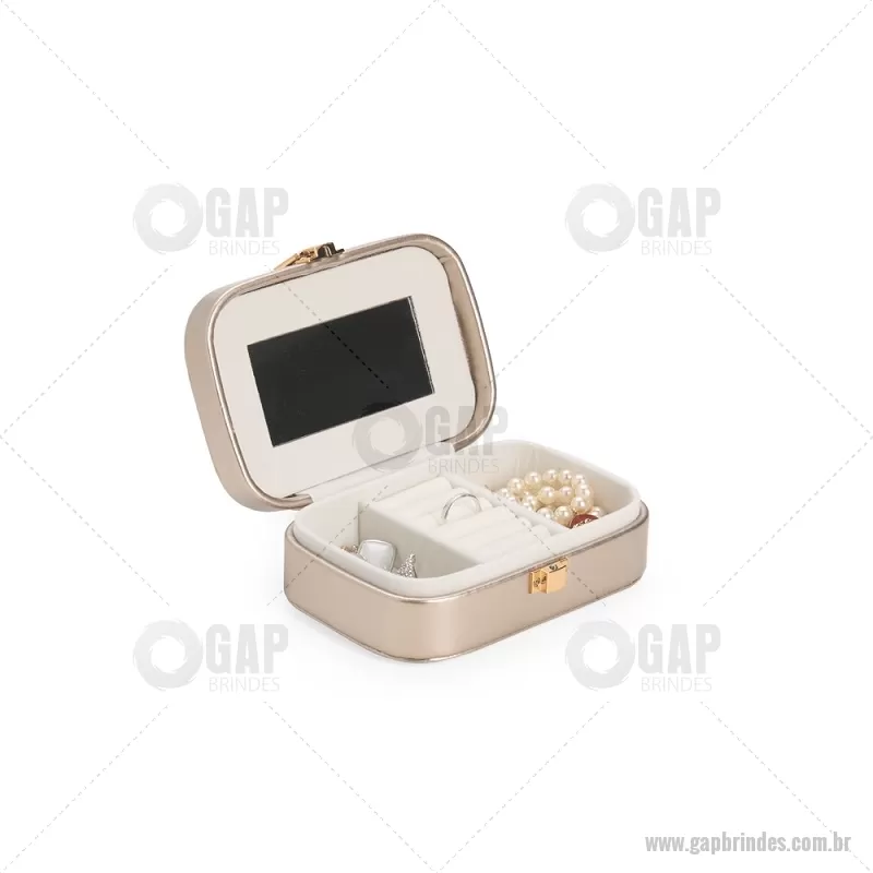 Porta-joias com espelho em poliuretano (PU) e revestimento interno em tecido aveludado. Conta com espelho interno, duas divisórias, repartição almofadada com ranhuras e trava de segurança. Medidas produto: Altura : 5 cm x Largura : 10 cm x Comprimento : 15 cm Peso aproximado (g): 167 - - GAPFEM123