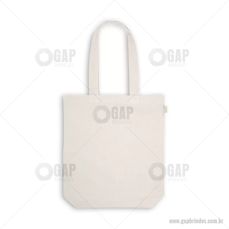 Sacola em 70% algodão reciclado e 30% poliéster reciclado (220g/m²), com alças de 65 cm. O tecido é sem tingimento, e utilizado na sua cor original, sem produtos químicos de tingimento ou branqueamento , contribuindo para um menor impacto ambiental. Medidas: 380 x 420 x 100 mm Peso do Produto (g.): 127 - - GAPSAC112