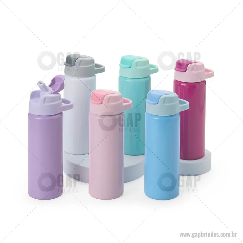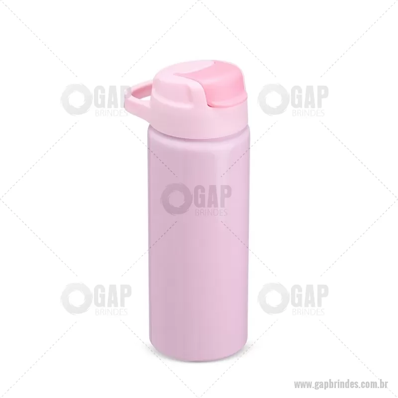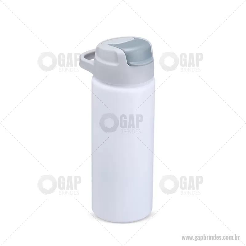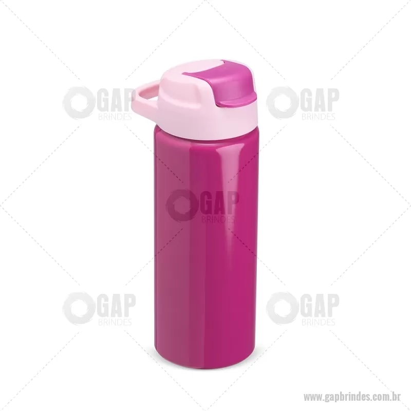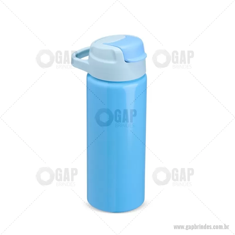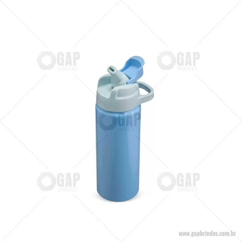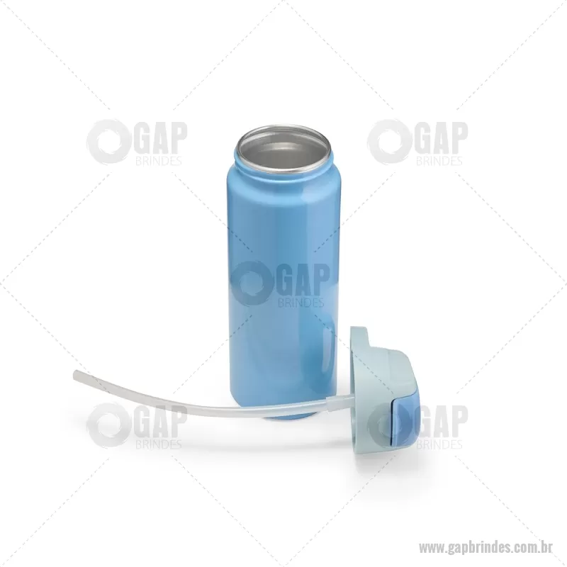 Squeeze de alumínio com capacidade máxima de 600ml. Possui tampa rosqueável em plástico com alça para transporte, protetor de bocal, bico flip top e canudo interno em plástico. Altura : 20,5 cm x Largura : 7 cm x Circunferência : 22 cm Peso aproximado (g): 117 - - GAPSQM087