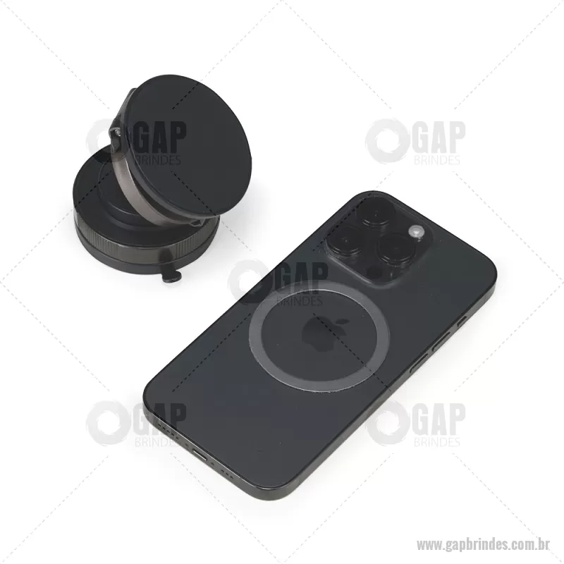 Suporte Magnético Para Celular Suporte magnético em plástico ABS com articulação em diferentes ângulos e rotação de 360 graus no próprio eixo. Possui superfície magnética para fixação de aparelhos na vertical ou horizontal, compatível com dispositivos magnéticos ou com o anel adaptador incluso. Conta com mecanismo giratório para pressão da ventosa em superfícies lisas. Acompanha anel magnético adesivo, placa plástica com adesivo, kit de lenços e chave Allen. Altura : 3,1 cm x Largura : 6 cm x Circunferência : 18,8 cm /br> Peso aproximado (g): 76 - - GAPTEC546