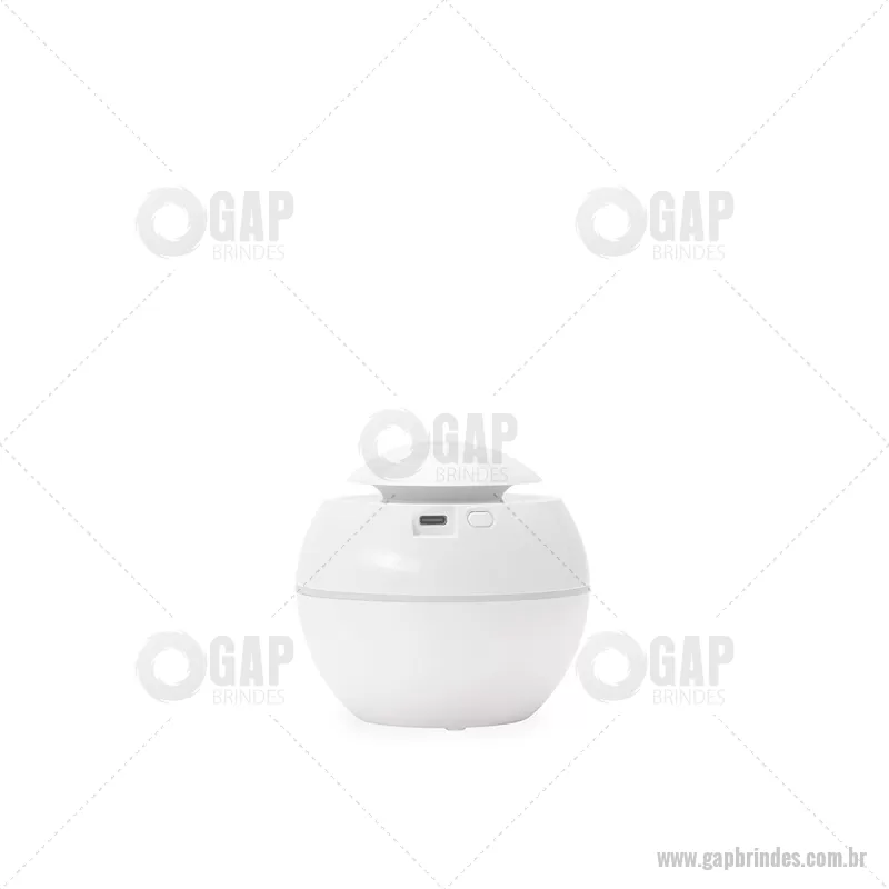 Umidificador de ar em plástico com iluminação LED e reservatório de 200 ml. Oferece névoa contínua ou intermitente e opera somente conectado a uma fonte de energia via entrada USB-C. Acompanha filtro de algodão e cabo USB-C. - - GAPTEC538